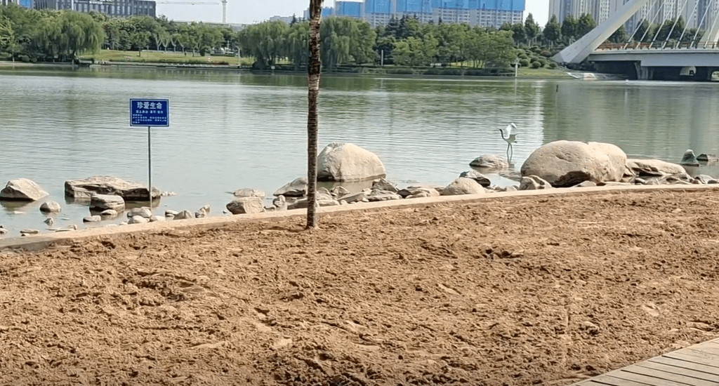 玩沙子的话可以自带水桶和小渔网,草丛那边有浅浅的水台,可以拿着水桶接水挖沙玩,到了晚上可以去临路那边坐坐小车,在万达吃个晚饭,遛娃来这里是个不错的选择。