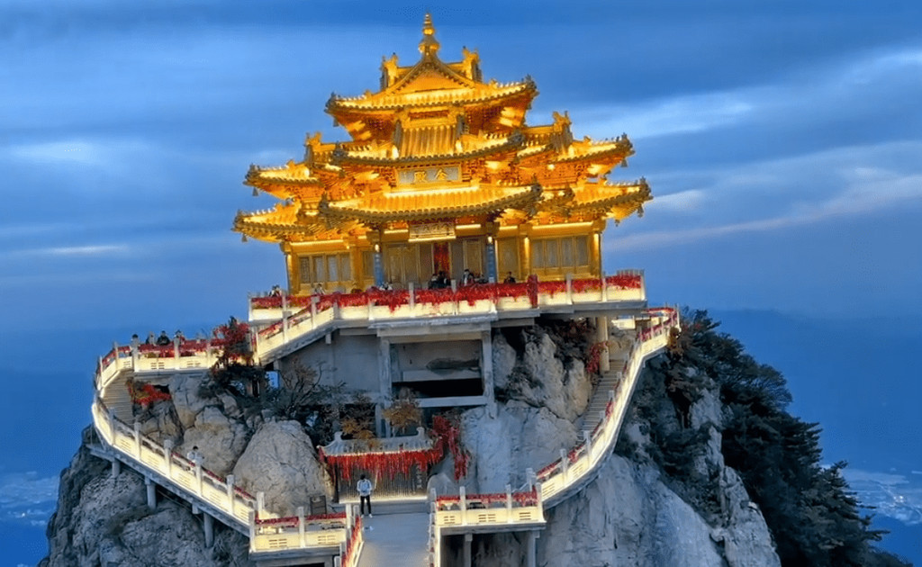 建议去的时候注意保暖,山上气温比较低,到达伏牛山主峰,能看到老君山金顶的全貌,晚上灯光亮起的景色才是真的壮观,之前老是刷到各种美图,自己去了才能了解照片远不及肉眼所见的震撼!
