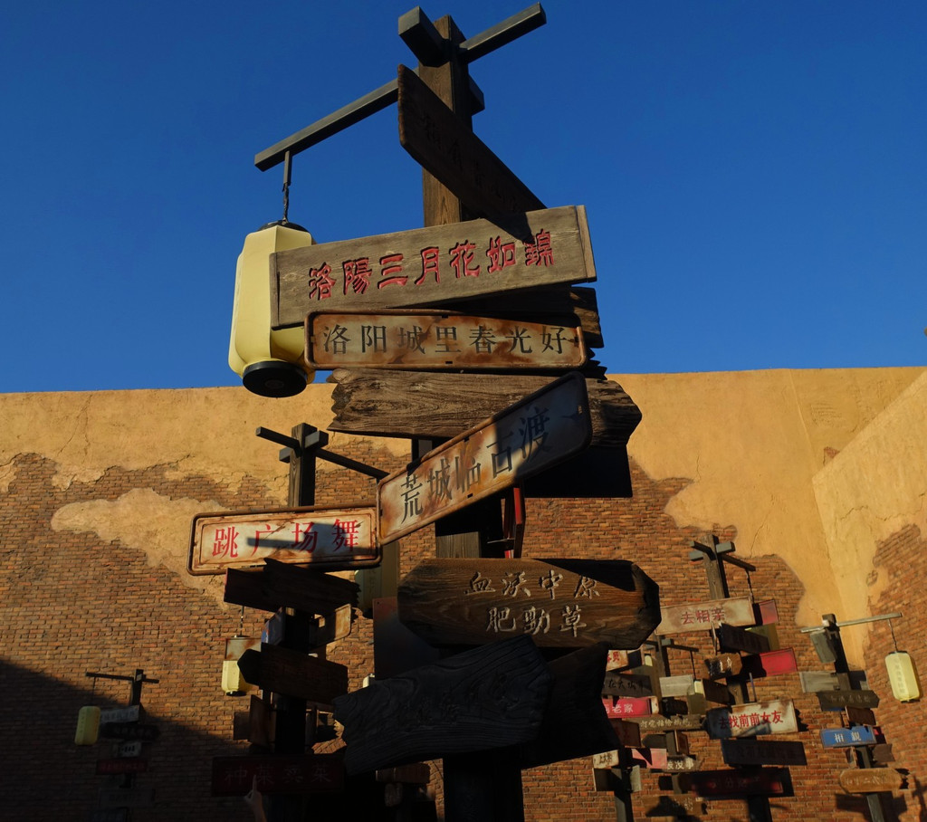 此外景区建筑构造也值得花时间欣赏。刚进门就是大片广阔的麦田,地坑院二楼也种植了大片,收获的季节过去想必是麦浪滚滚。晚上大屏广场有投影激光秀,《只有河南》这首歌在脑中循环播放N遍。有一片四面刻满河南所有县市乡镇的土墙和中间的黄土碑第一眼就震撼了我,不知为什么,中原给我的就是这样粗粝、踏实、厚重的印象。