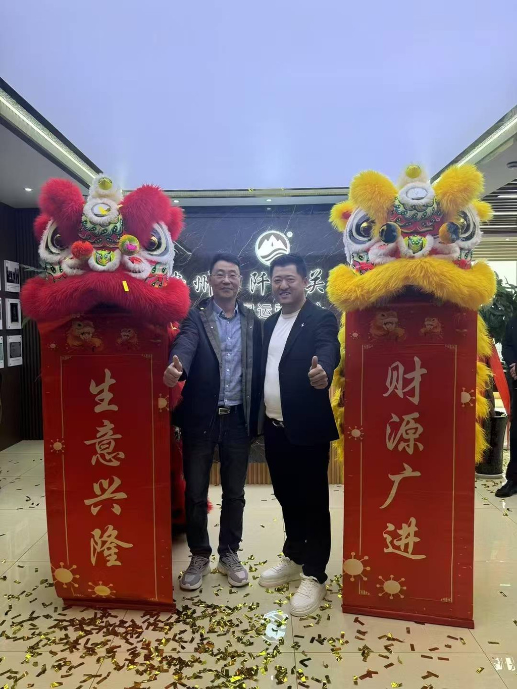 上午 9 点半,运营中心现场瞬间被欢腾与热闹点燃,精彩的舞狮表演如灵动的精灵,欢跃跳动,为这场开业庆典增添了无尽的喜庆氛围。随后,大关酒厂总经理邓劲松与大关酒业销售执行总裁范芙材一同走上前去,庄重而有力地揭开了运营中心的牌匾,这一刻,标志着大关酒业全国运营中心正式开启了壮丽的新征程。