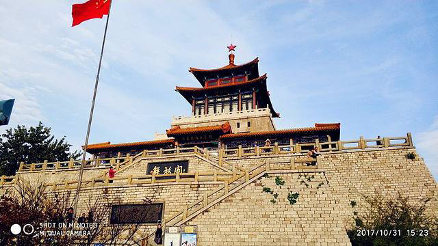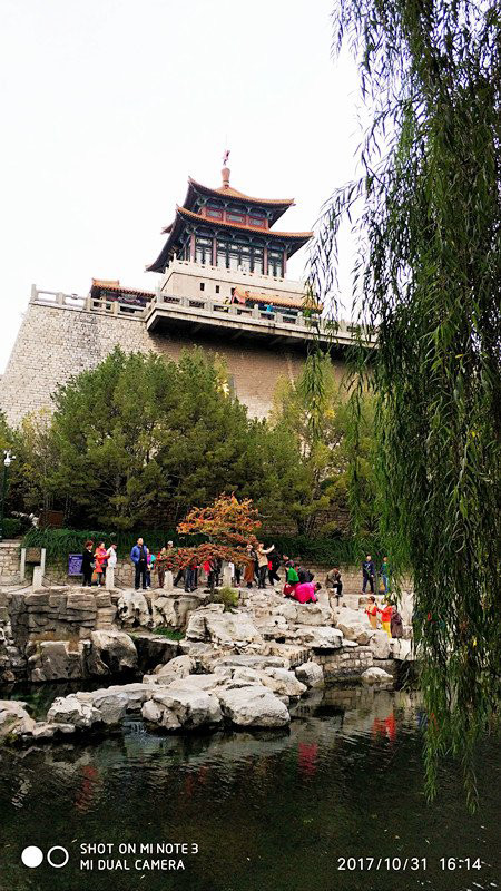《解放阁》。建在古城墙上,为纪念济南战役胜利而建,是济南标志性建筑之一。