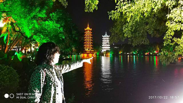 《两江四湖》白天和晚上景色不同,是分开游玩的。白天游《两江四湖》、《象鼻山公园》和《正阳步行街》,晚上再次回到《两江四湖》。夜游《两江四湖》是这次来桂林旅游的重中之重。