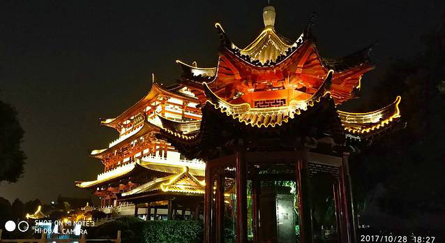 《日月双塔》。《日月双塔》是《两江四湖》环城水系中最著名的景点,双塔建在水中,是楼阁式水中塔,夜景极美。
