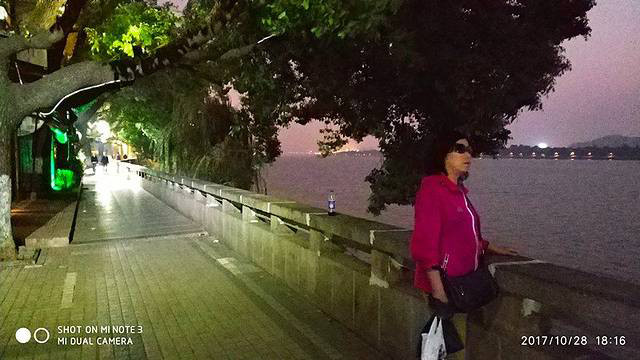 翡翠般的湖面,千姿百态的草木,还有那陶醉在美景中的游人,她们共同勾画出了一幅美丽的图画。