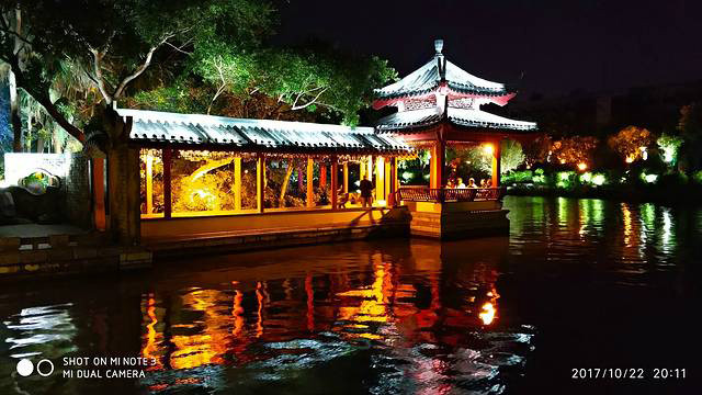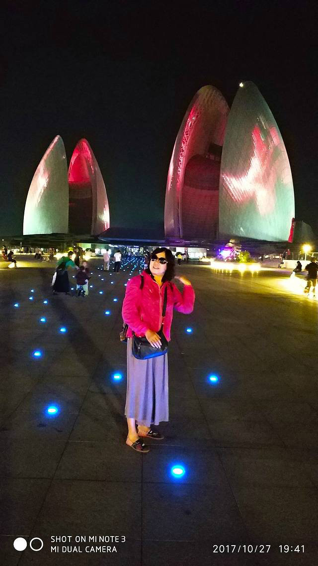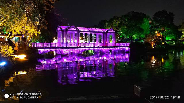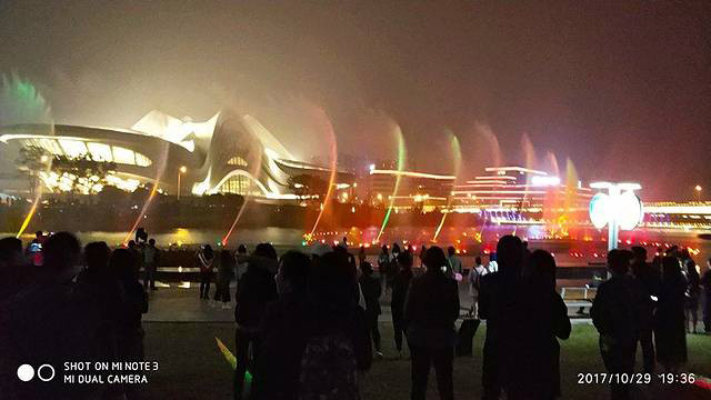 晚8点开始的“荷花音乐喷泉”,在五颜六色灯光的衬托下,高高喷起的水幕围绕着圣洁的荷花,舞动着娇美的身姿,千姿百态,煞是好看。