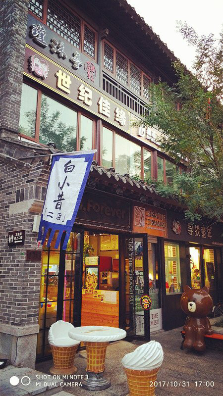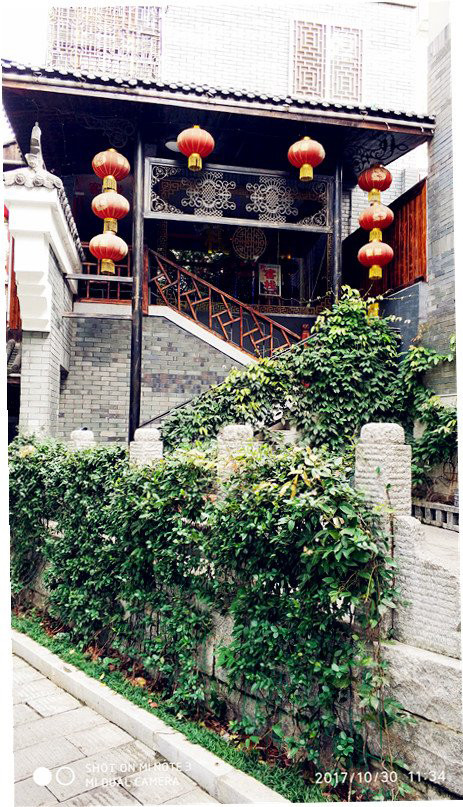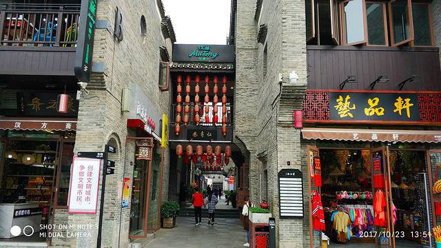 是《芙蓉街》附近的迷你步行街。店铺在楼群中,各有特色,店面雅致,给人以清新的感觉。