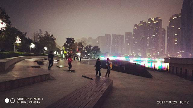 这是喷泉的中心场地,加上长长的延伸部分,是名副其实的大型音乐喷泉。