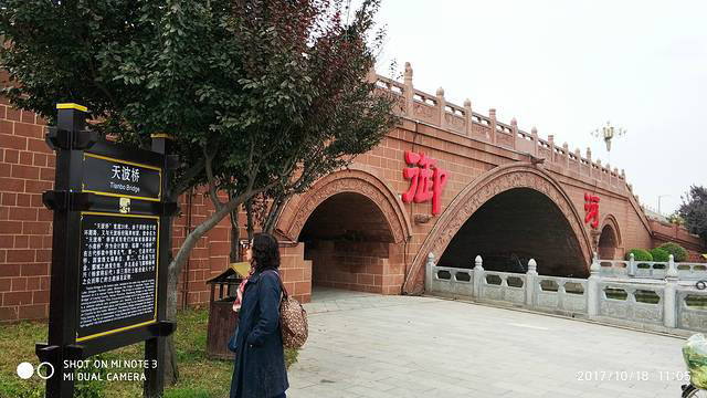 御河上的天波桥。天波桥与《天波杨府》隔岸相望,是宋代古桥,它见证了岳飞部将杨再兴抗金的古战场历史。