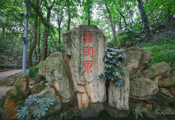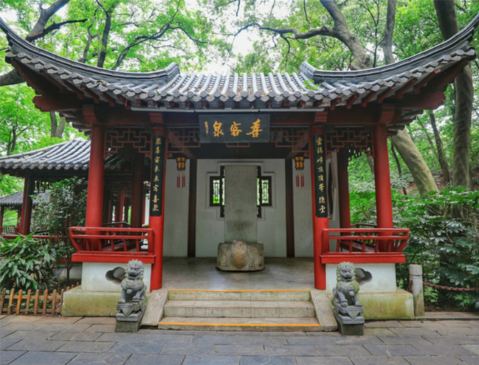 喜客泉为茅山十九泉中最著名的一眼古泉,泉水冬暖夏凉,水质甘甜,遇旱不涸,集古树名木、神泉、古迹、亭台轩榭于一体,形成一幅天然的山水画。