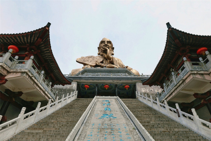 茅山风景区老子神像端庄慈祥,两耳垂肩,美髯拂胸,右手执太极扇,左手举于胸前,一派仙风道骨,让人心生敬仰。