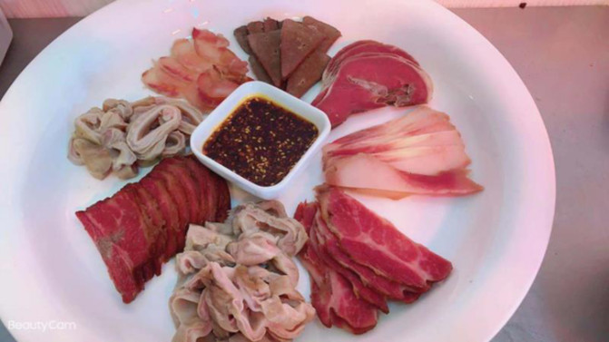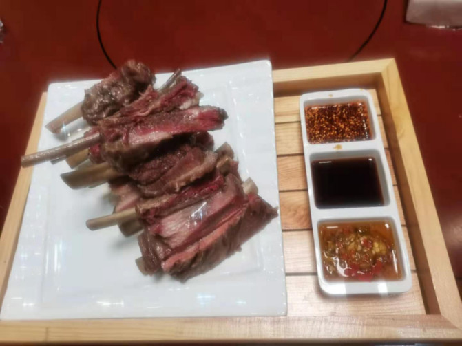 刘肇兴餐馆新坊分店这道五香驴排是店家招牌,数十种香料和药材制作,秘制酱卤了十几个小时,瘦肉酥烂、筋皮Q弹,配上蘸料放入口中难以表达的香味充盈口腔,醇厚且久远~当此之时作为吃货的我只能大口朵颐啦~