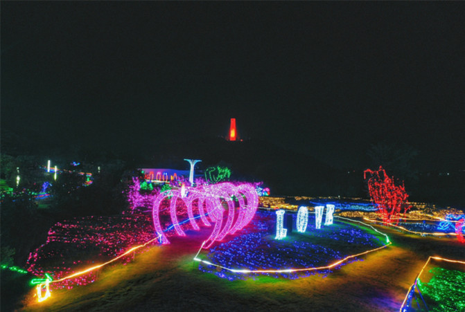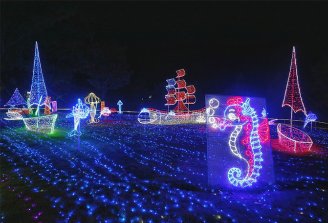 本次灯光节分为四个灯光区域,分别是爱情区、海洋区、儿童游乐以及献礼新 中国 成立70周年的红色主题教育区。