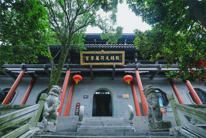 茅山风景区元符 万宁 宫包括睹星门广场、灵官殿、万寿台、三天门广场、勉斋道院、太极广场、老子神像、老子广场、二十四孝图等建筑群,每一处景观都别有韵致。