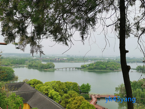 站在这里,可以俯瞰金山景区的全景。水中的绿洲,正是百花洲和云根。