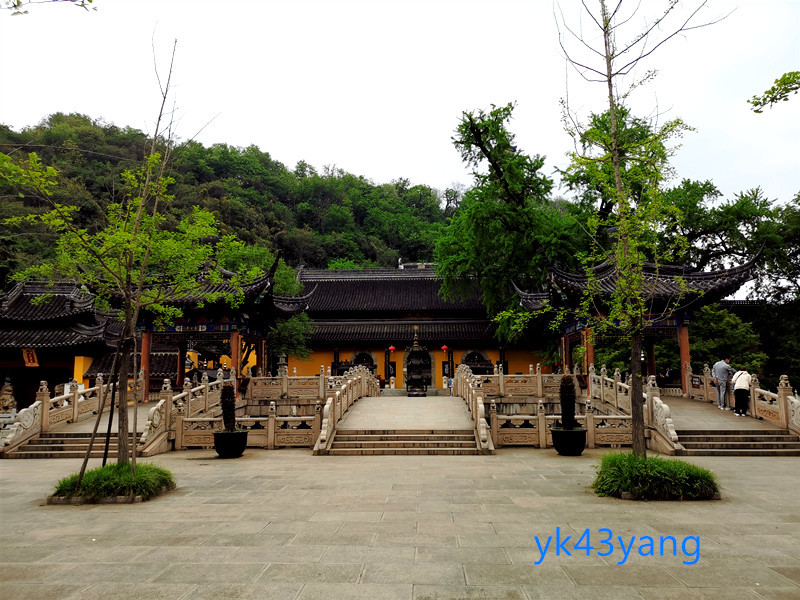 山门之后,是放生池上的三座白石桥。两边的石桥上各有一座桥亭。一座是“茗山亭”,纪念已故的茗山大师。另一座是“焦公亭”,纪念东汉的焦光。