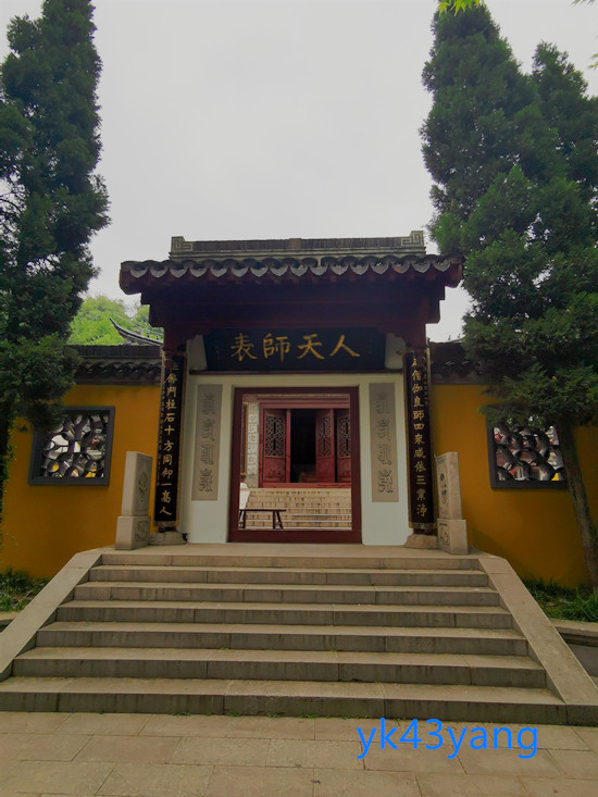 这是“茗山纪念馆”。大门上方悬挂横匾,题曰“人天师表”。