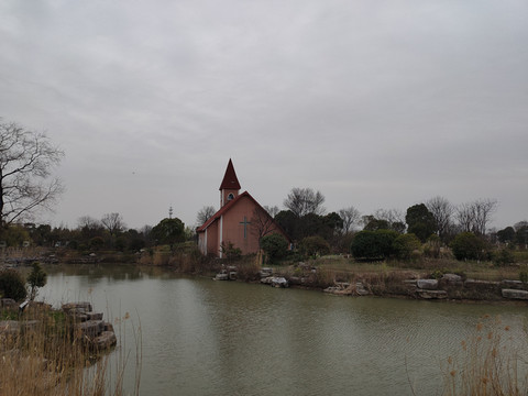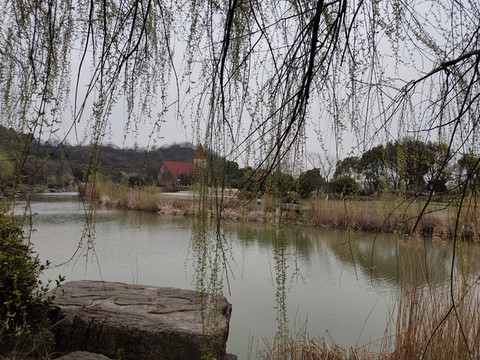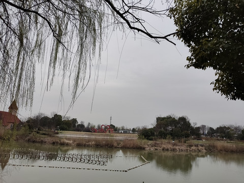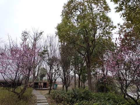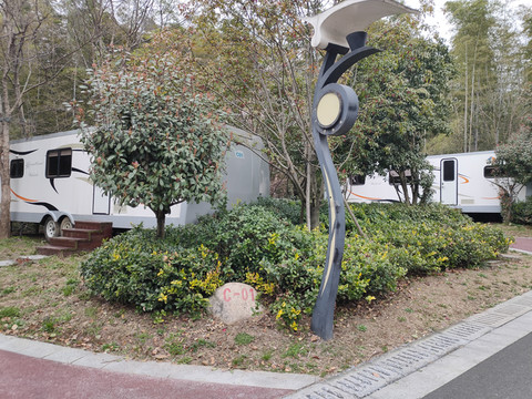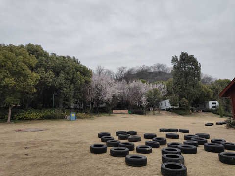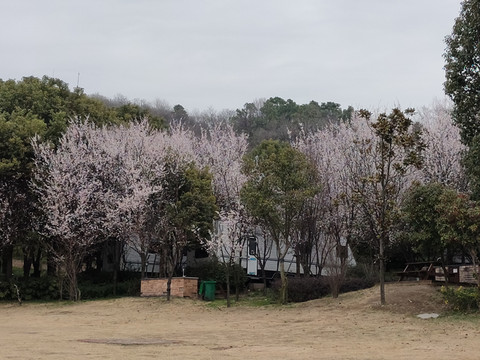 下到山脚,则是小桥流水的格局,还有一些亭台,梅花将凋,梅人梅却开得极好。池塘水清,草坪新绿,还有房车的露营地。