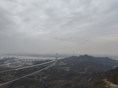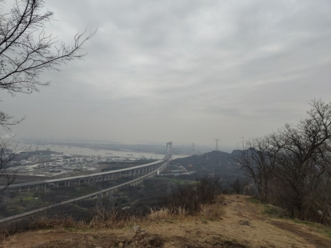 在山上可以俯瞰万里长江,距离并不算远。长江大桥横跨江山,不管在哪里看长江大桥,都会觉得很震撼。