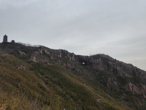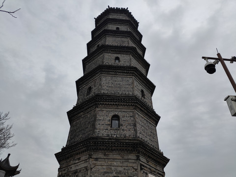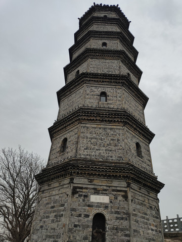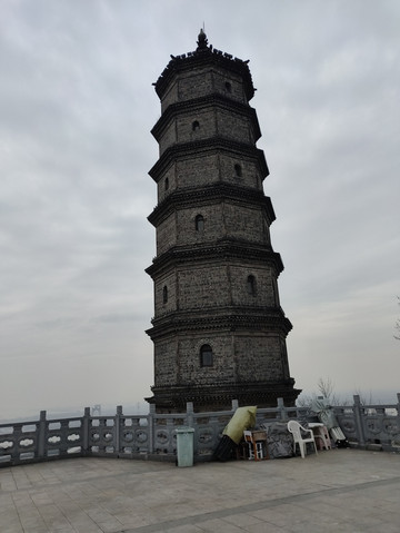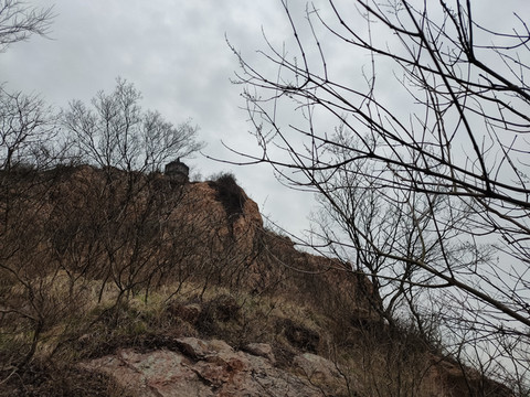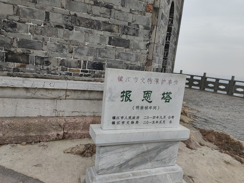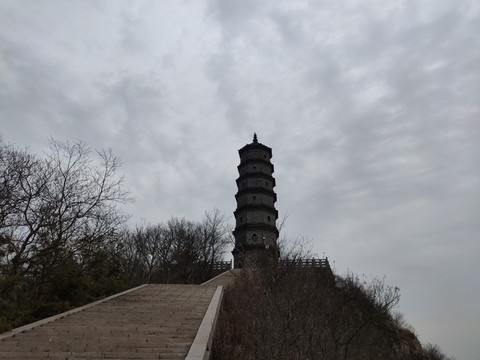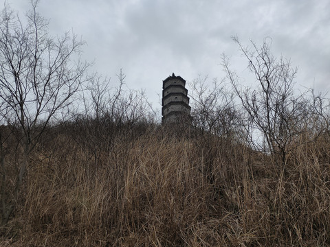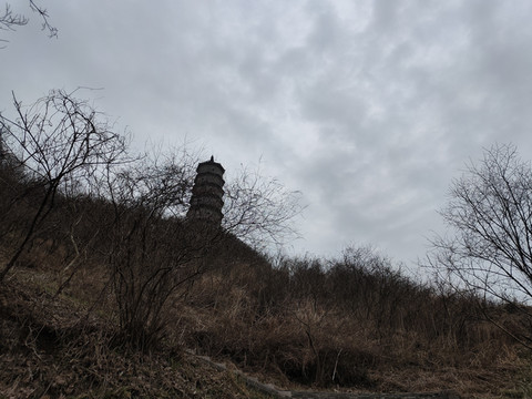 直达峰顶就看到了报恩塔,砖石结构,高七层,建于明朝崇祯年间。塔旁原来还有楞严寺,不过现在只有这座塔孤伶伶地矗立着。既然是兵家必争这地,战火大约是少不了的。不过根据介绍,倒不是我以为的是寺庙的塔,出资建造的是明代吏部尚书陈观阳。