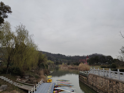 一溜儿的游船让我们想到刚来时路边的私家车,大概这里也是新区市民们休闲的好去处。周末带着孩子来划划船,算不上景色多么惊艳,至少空气还是很新鲜的。