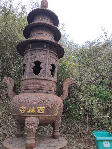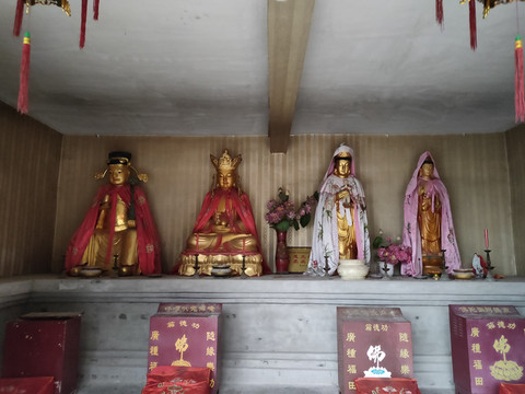 我们从另一侧下山,半山有一座西林寺,规模不大,殿内供奉着菩萨,也有道家打扮的财神,所以一时间也不知道这里到底是供奉佛祖还是三清的。据说圌山在极盛时期,仅尼姑庵就有十来座。想来西林寺原先的规模应该也不止于此,不过后来也被毁了。路上遇到一位游客,我们才知道楞严寺还在,只不过在另一头,我们没有途经。