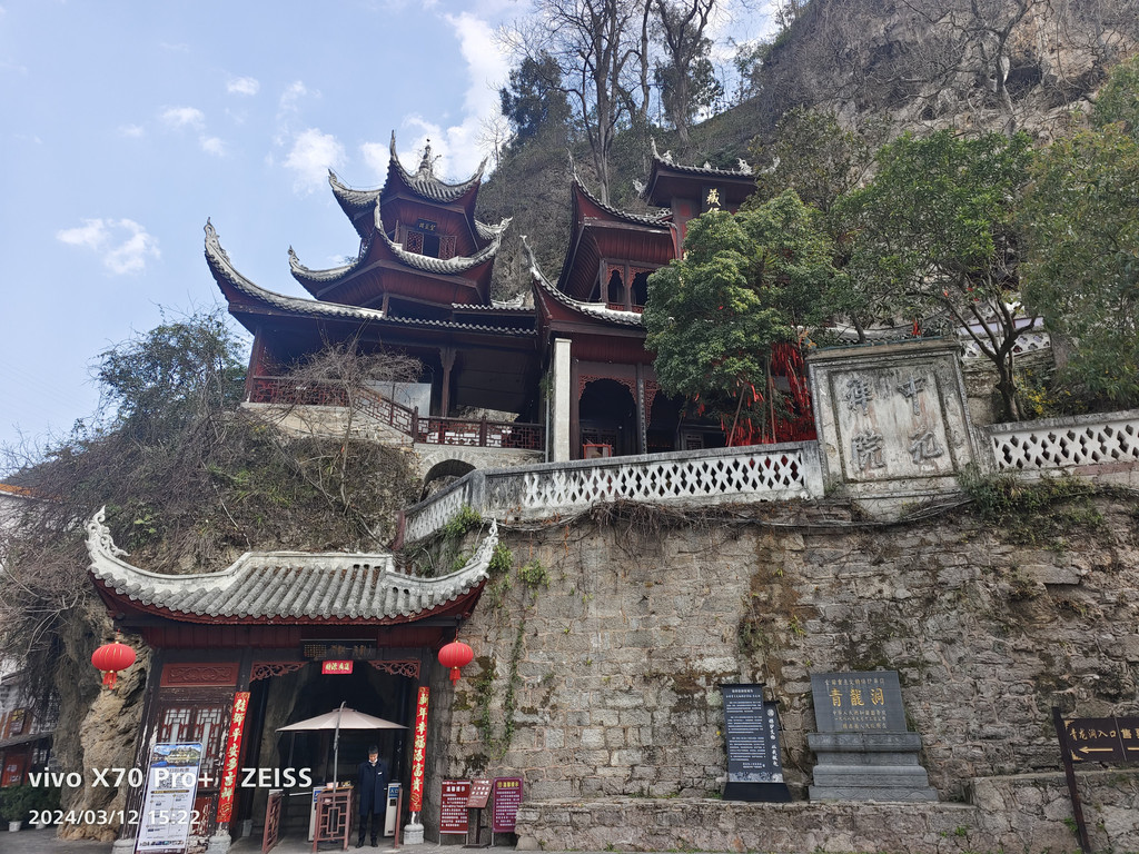 青龙洞,青龙洞古建筑群始建于明洪武二十一年(1388年),迄今已有六百多年的历史了。青龙洞集佛教经殿、道教庙堂、儒家书院、会馆为一体的佛、道、儒、俗古建筑群,全国独有的中原建筑与苗侗吊脚楼干栏式巧妙结合的古建筑群号称“南方悬空寺”。