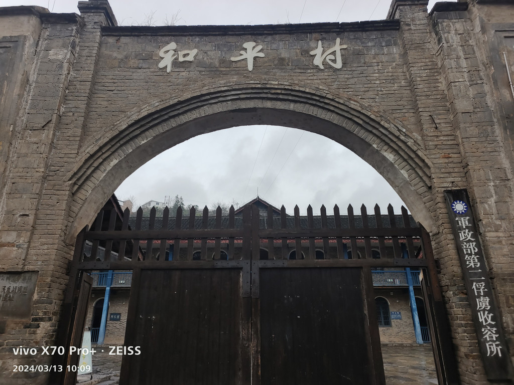 和平村,“和平村”是国民党政府军政部第二日军俘虏收容所,设在镇远卫城十字街东侧五云山下,原镇远总兵署中营衙门。前有巷道北通卫城上北门,面临濞阳河,后依五云山,有卫城南门通金堡苗乡,方圆面积50000平方米。仍保留着当年“和平村”半圆拱形大门和高高的围墙,并恢复了当年的“新生班”、“研究班”、“训练班”、“哑子室”、“职员室”。