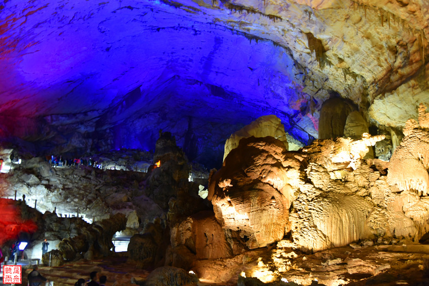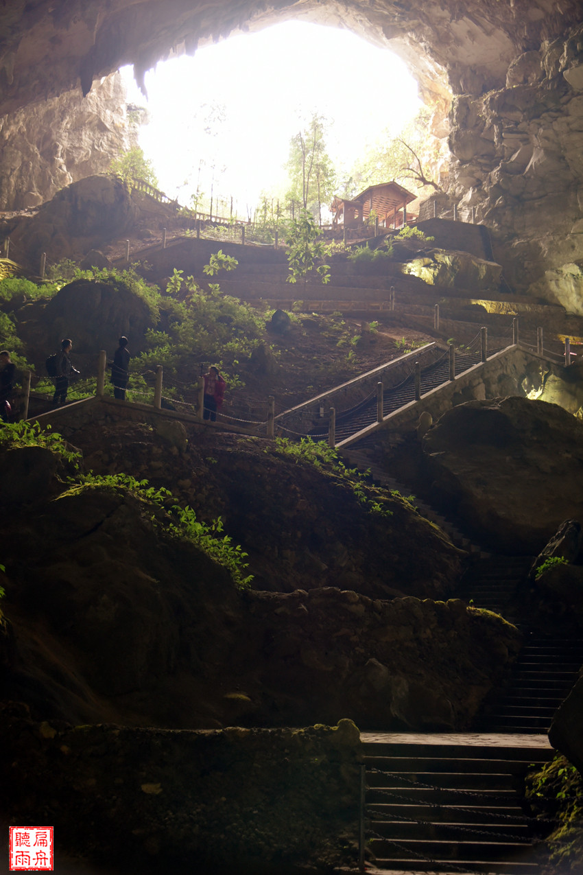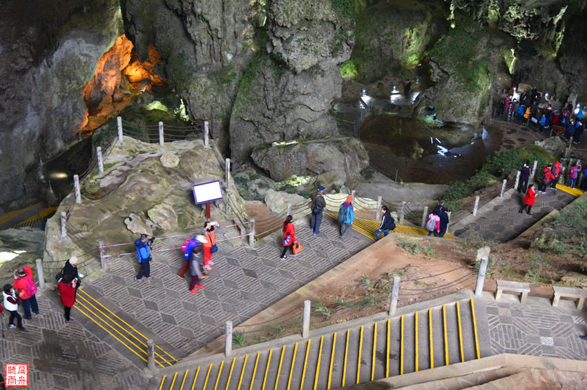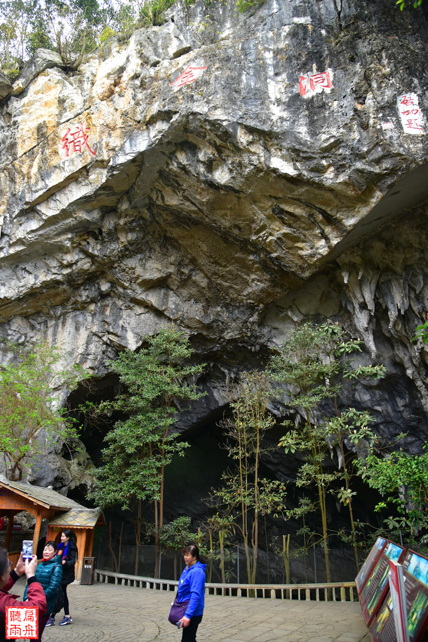 织金洞是一个典型的旱洞,巨大的洞口吞噬了像蚂蚁一样的游人。