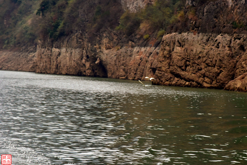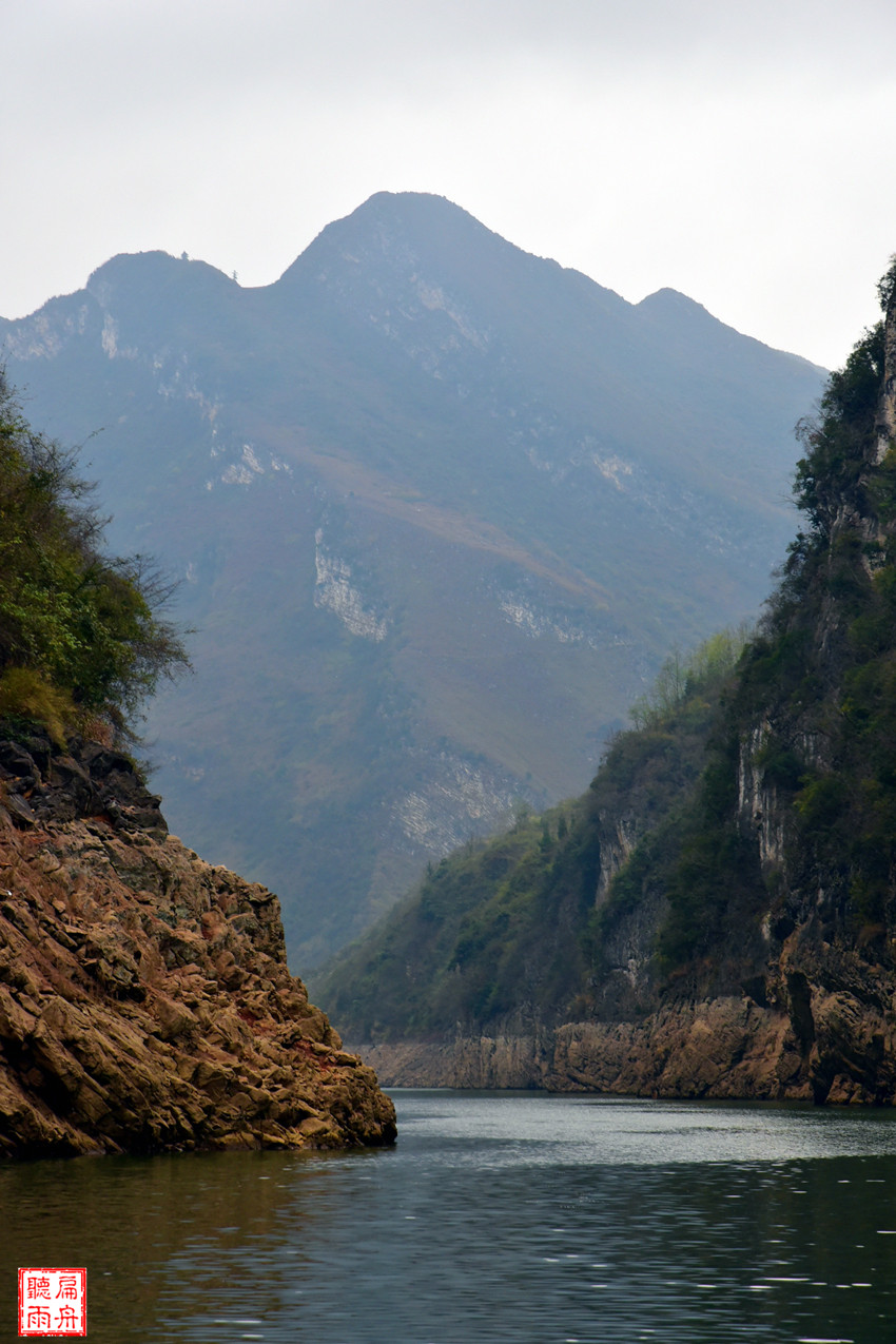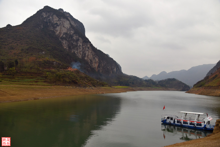 在码头上得船来,便见水面平稳,没有料想的那样水流湍急,乌江似乎非常的驯服。原来,乌江上游修建了东风水电站,水库的建成让曾经桀骜不驯的乌江竟颇有了一些长江三峡的模样风情。