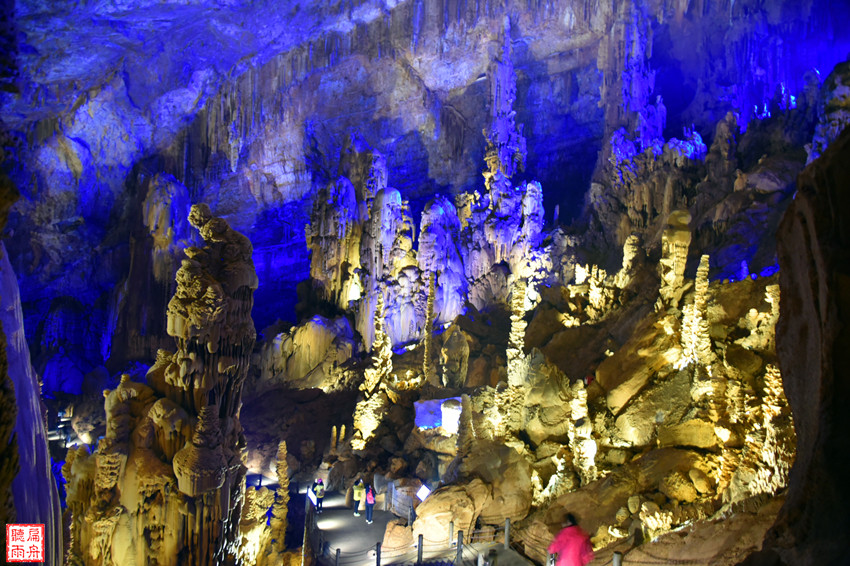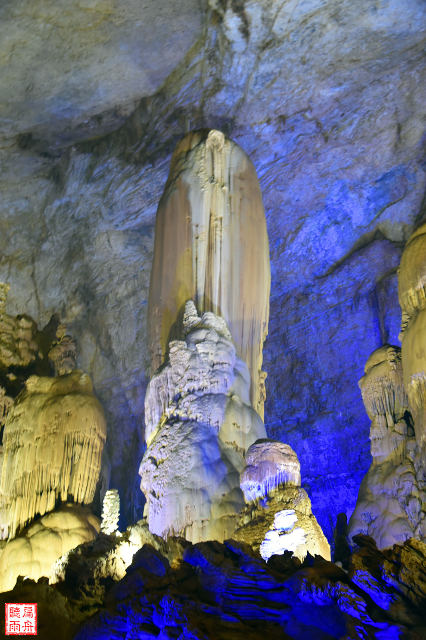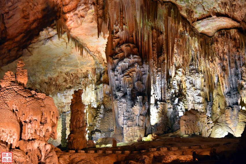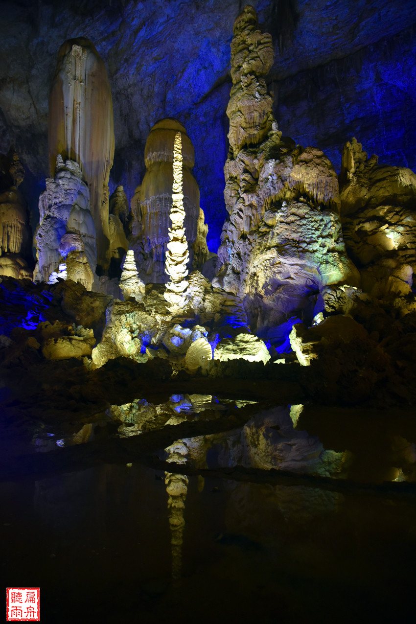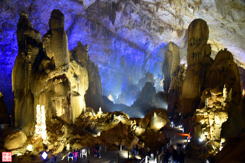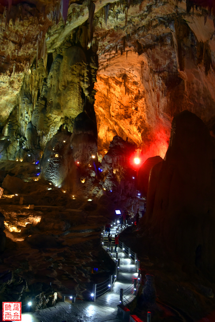走过很多地方,也进过很多溶洞,但织金洞给我的震撼是它塌陷的洞厅之大,以前还从来没有见过,其最大的洞厅面积达3万多平方米。根据不同的景观和特点,分为迎宾厅、讲经堂、雪香宫、寿星宫、广寒宫、灵霄殿、十万大山、塔林洞、金鼠宫、望山湖、水乡泽国等景区,有47个厅堂、150多个景点。