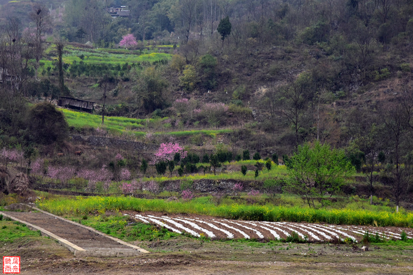 三月下旬,虽然已是仲春时节,黔西山区隔三差五的总还是寒意料峭,这天的温度竟然只有5摄氏度左右,但不管怎样,俨然已是桃红柳绿。两岸的景色如此迷人,尽可以让船家靠岸,惬意得上得岸来漫步采风,恍若闯入了桃花源中,静悄悄,寂寂然,却到处都是生机,到处都是惊喜,到处都有兴致。