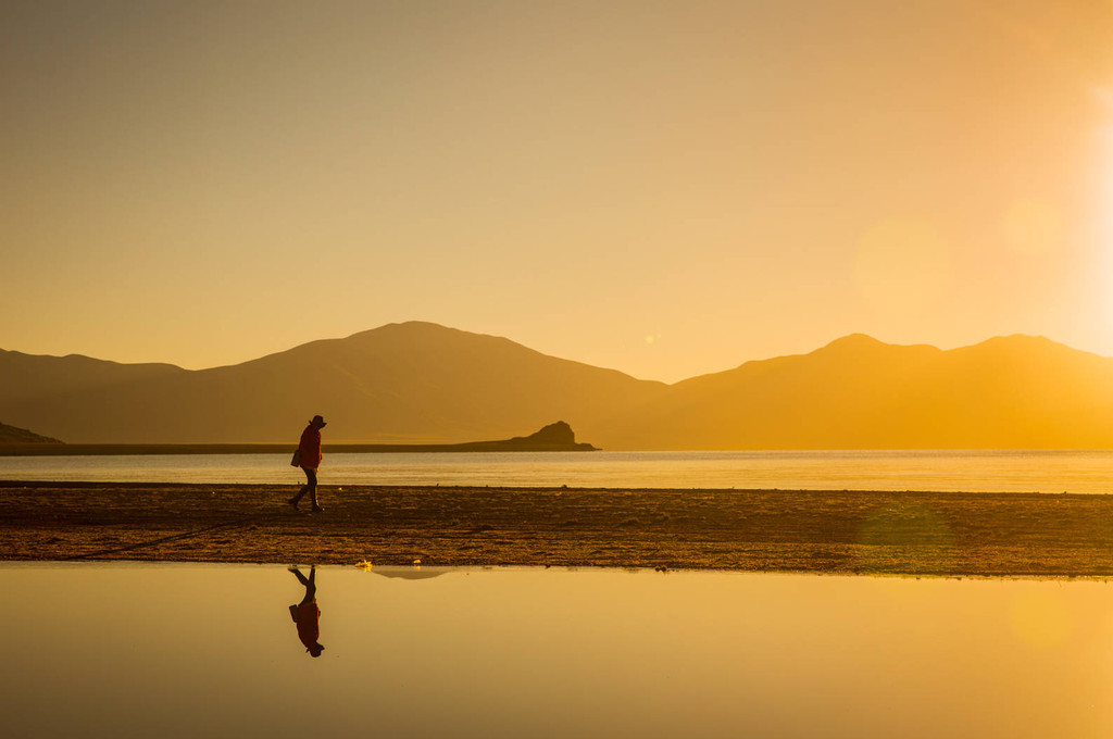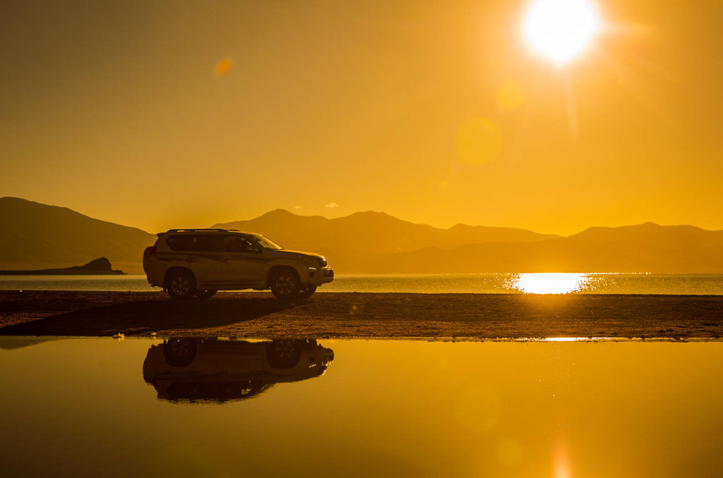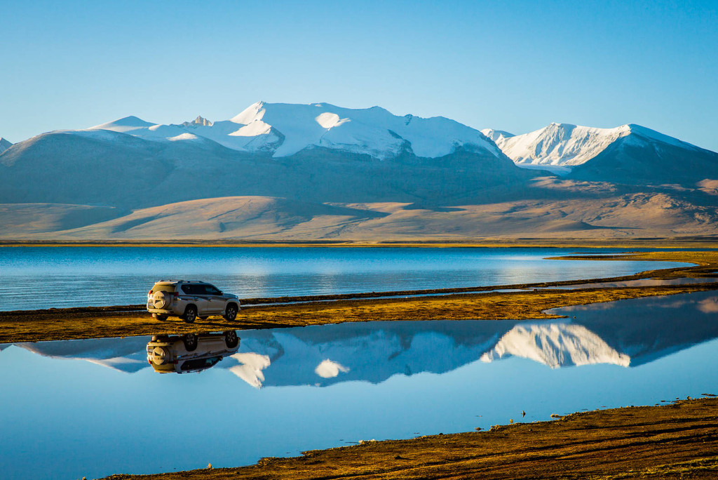 太阳雪山后升起,金黄的光辉洒满湖面,沿着711县道绕湖大半圈,或水岸驻足,让高原短暂的晨曦包围着你,满眼都是纯净与温暖。重要的是,车可以开到湖中间。