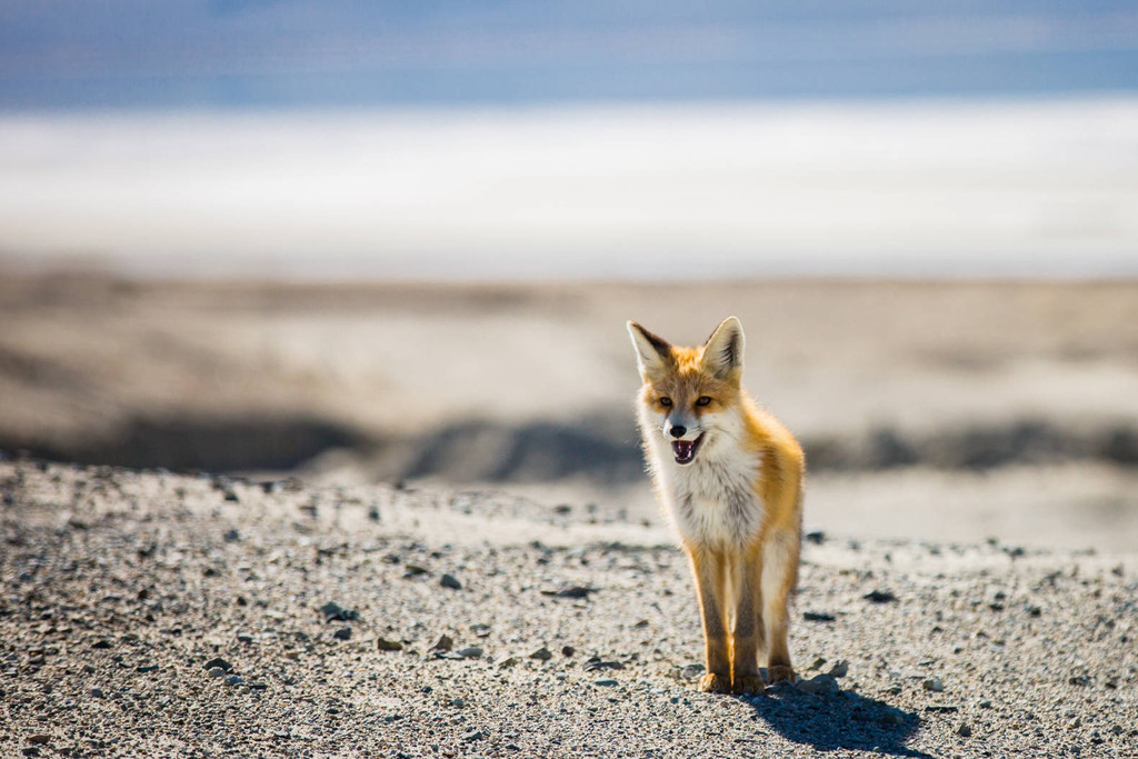 扎布耶茶卡有一只网红狐狸,在盐湖南北湖之间的隔离带,你耐心等待,拿出东西吃,狐狸闻到香味会跑出来,不太怕人,喂食给它并不吃,带走储藏到不同的洞穴,大概是要准备过冬了,孤独一人,不知道何时会成精。