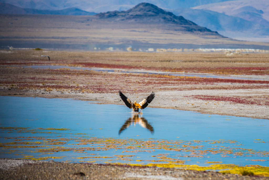 在“仁青休布错”和“扎布耶错”之间有一片沼泽地,各种鸥鸟翻飞,还倒映于水面,特别的美。