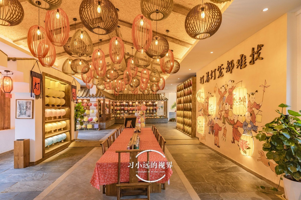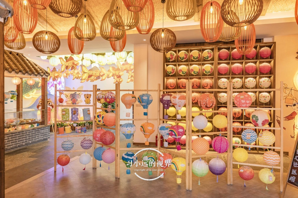 花灯是中国自古以来就有的节日道具之一,做花灯,猜灯谜,游灯会总会伴随着浪漫产生,走进灯笼铺,花样繁多的灯笼让人总想凑近摸一摸,看着每个发光的灯笼,总会把我引向村里每年正月十五元宵节买蜡烛扎花灯和举着花灯游街的场景。当然这里的花灯更加的好看和样式繁多,一面的墙上还有很多灯谜,感兴趣的可以猜上一猜。我猜了几个之后是一个也没猜到。