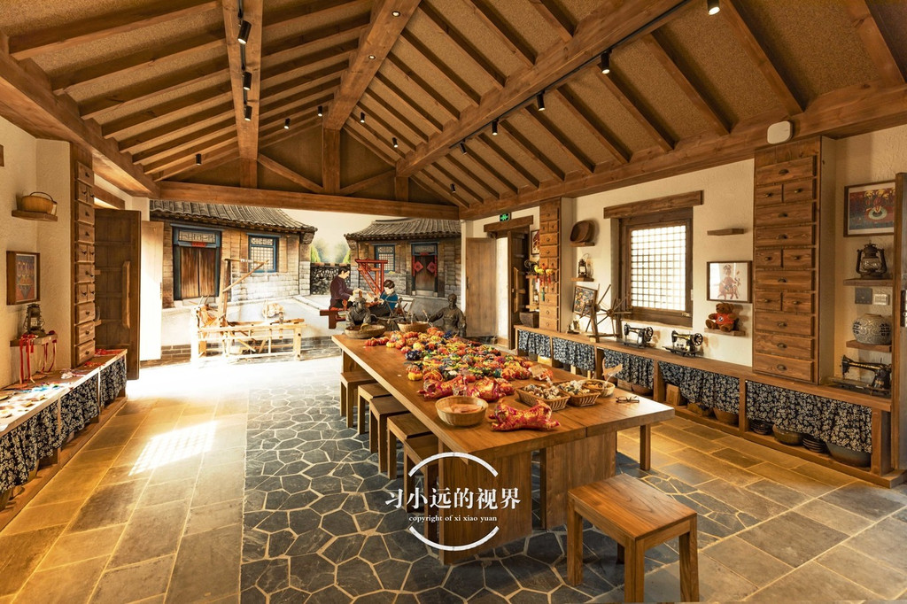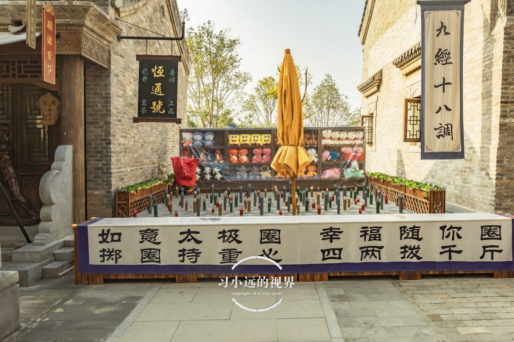 这里另一个主要的就是太极村这边,走过太极胜境的牌坊看到的就是玉娘药铺(实际卖冷品),这里夜晚是表演的圣地(一路有戏第三场),还有就是农耕文化馆,灯笼铺,纸鸢铺,祥泰染坊,电影美术画廊和林河酒坊。
