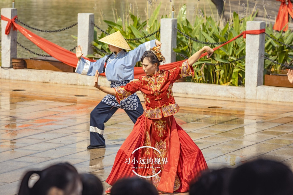 如果你按着表演的场地顺序来,你会发现表演的路线基本是一个从外到内再到外的环儿,相当于走了一遍景区。