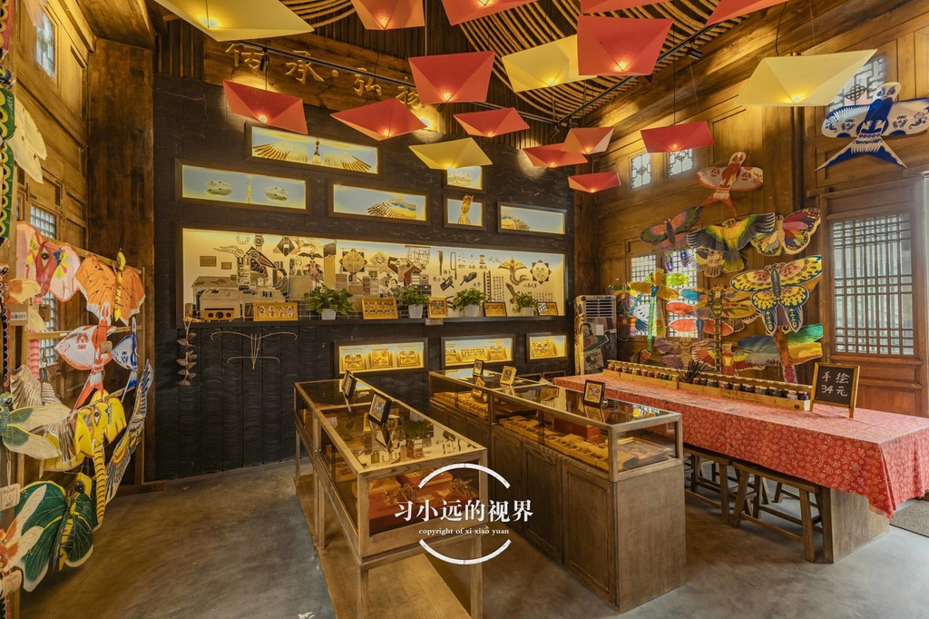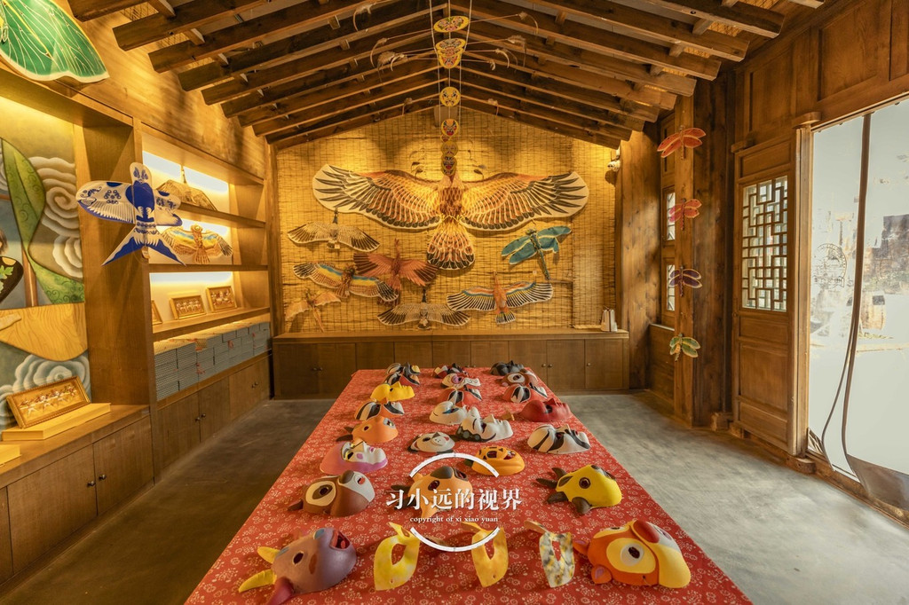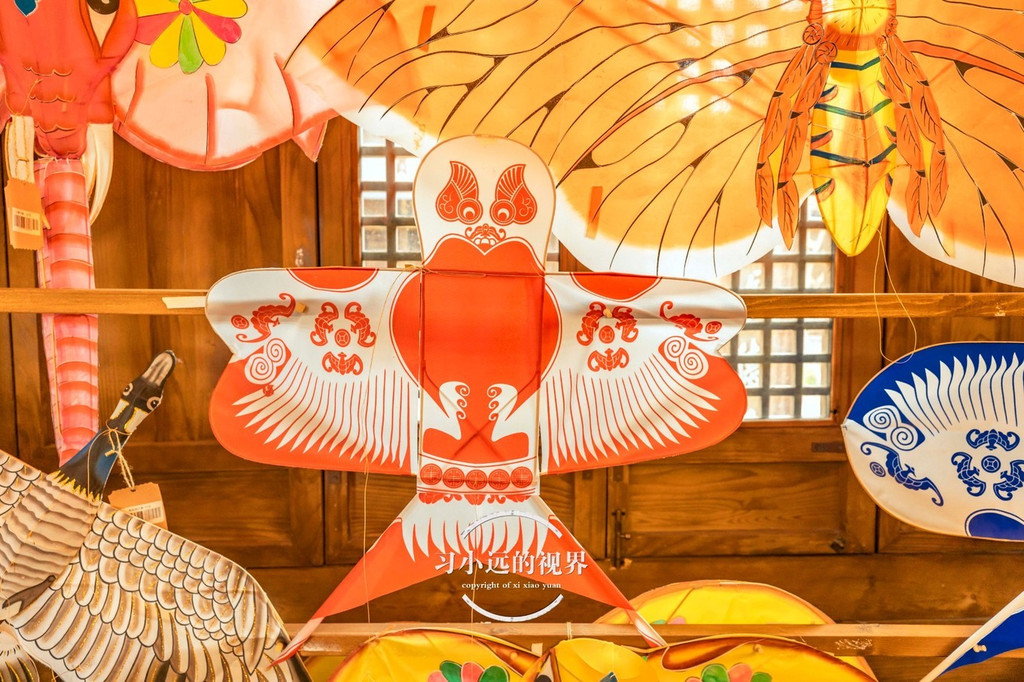 好纸造成鸢。占得风来便有缘。自古以前纸鸢就是爱情浪漫的象征,也是很多名人诗词里描述的对象。这里的纸鸢铺不大,几面墙上都挂着满满的各种样式的纸鸢,屋中的桌子上还摆放着顾客自己动手画的脸谱。可以说除了观赏购买之外,最重要的是可以亲身体验一下这些文化项目。