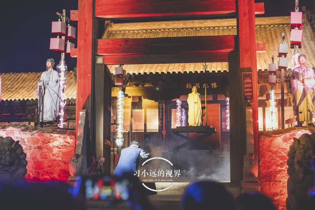 也是一场实景剧,观看的时候刚好遇到一批来社会实践的初中生,场地一下子就围满了。整场表演策划这拍中原刀客这部剧,由导演,演员,摄像场务组成,拍摄录制和演出了一场精彩的地方刀客和军阀头子战争的故事。故事情节也是设计的有些有肉,刀客的英雄主义和顾全大国和小家的情怀,都可以看到。