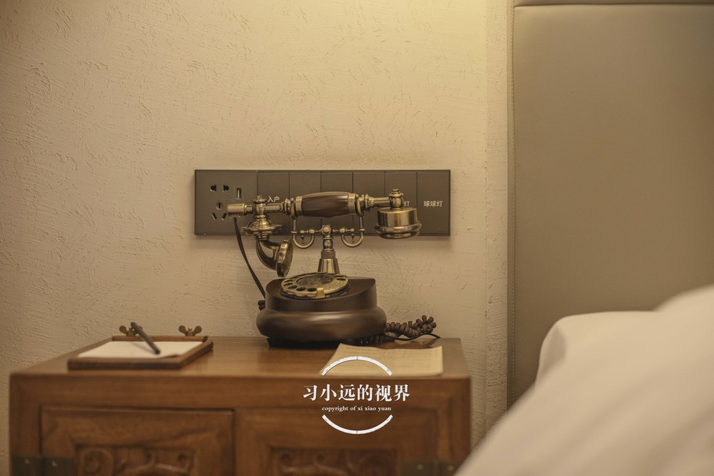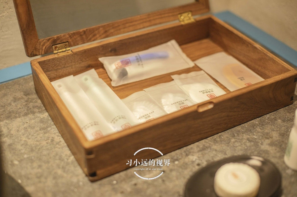 我这次入住的是景区里的西厢,复古式的庭院式住宿,外观仿古建筑,两进式的院子,大落地窗打开后面就是一个水池,还有亭子,室内有镜子看起来空间大了很多,温馨的暖色灯光让人感觉很舒服,一次性的洗漱用品竟然还有一把小木梳,可以说感觉就不一样。