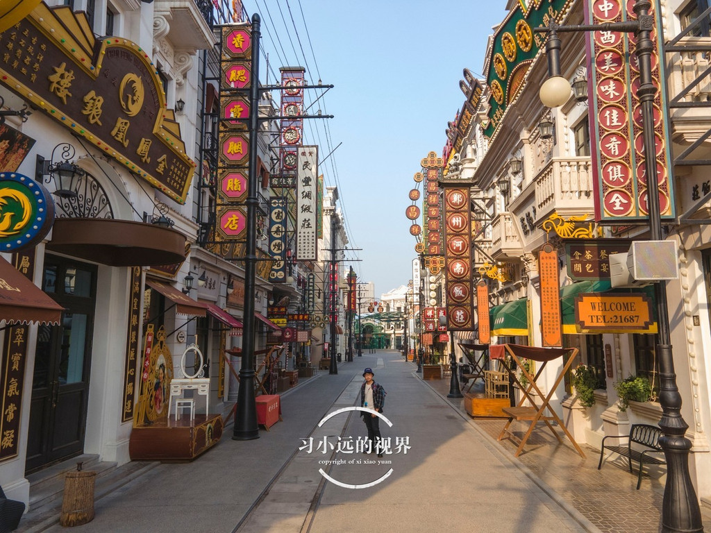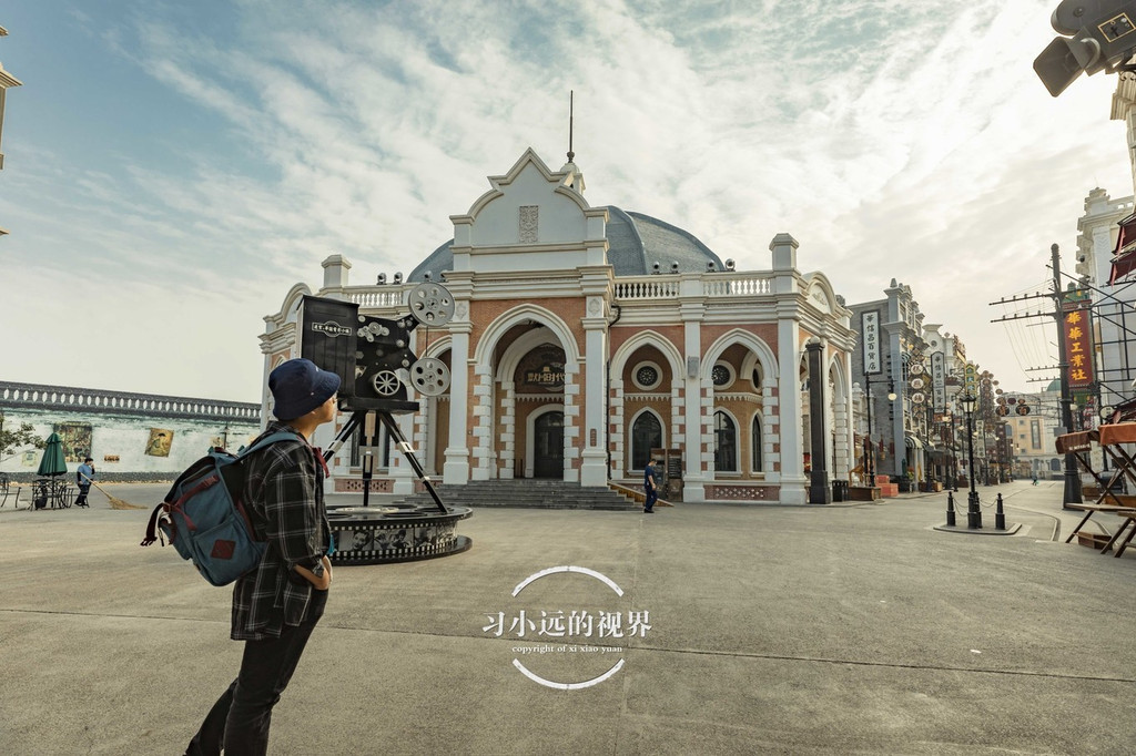 如果你住在景区里,不妨起个早,吃过早餐之后,来景区里溜达一番,你会看到劳作的景区工作人员在忙碌的准备开园的准备工作,你会发现建业·华谊兄弟电影小镇安静的一面,这时候的电影大道就是你一个人的,拍照再也不用愁有人入镜了,加上太阳的角度刚好直射电影大道,拍摄效果也非常不错,这里附几张我自己胡乱瞎拍的自拍照。