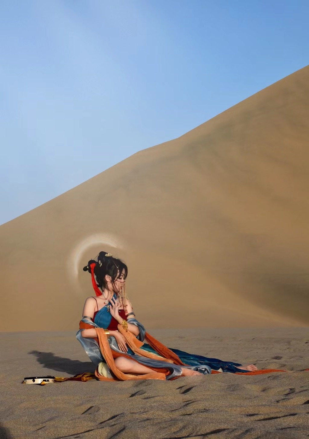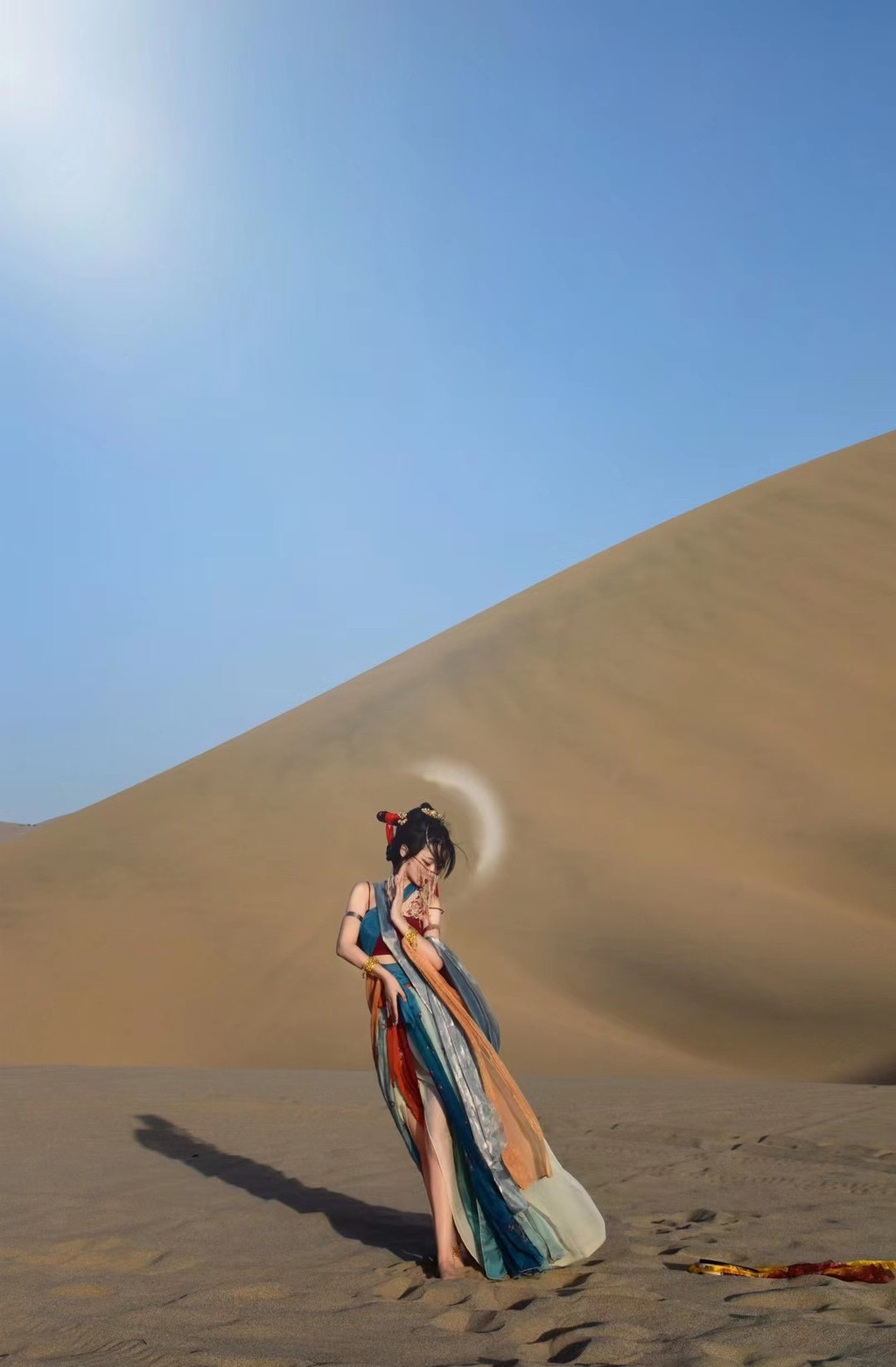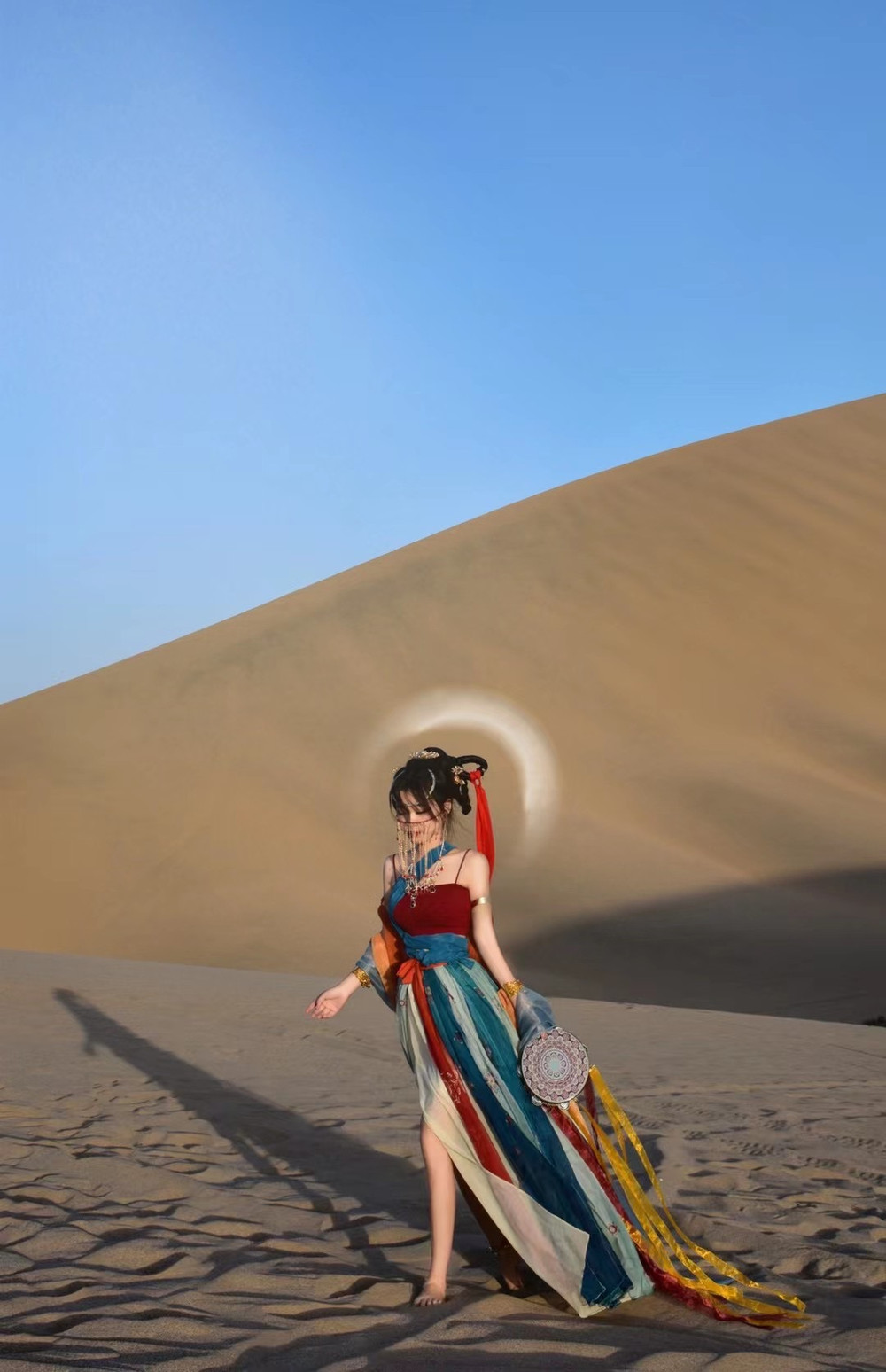 腾格里沙漠傍晚拍照非常美!它的沙丘起伏很大,每到傍晚,整个天空是呈玫瑰色~建议大家在下午3-4点先踩点(日照非常强烈,做好防晒),抓紧时间在5-6点拍照,手机也可以拍出时尚大片风