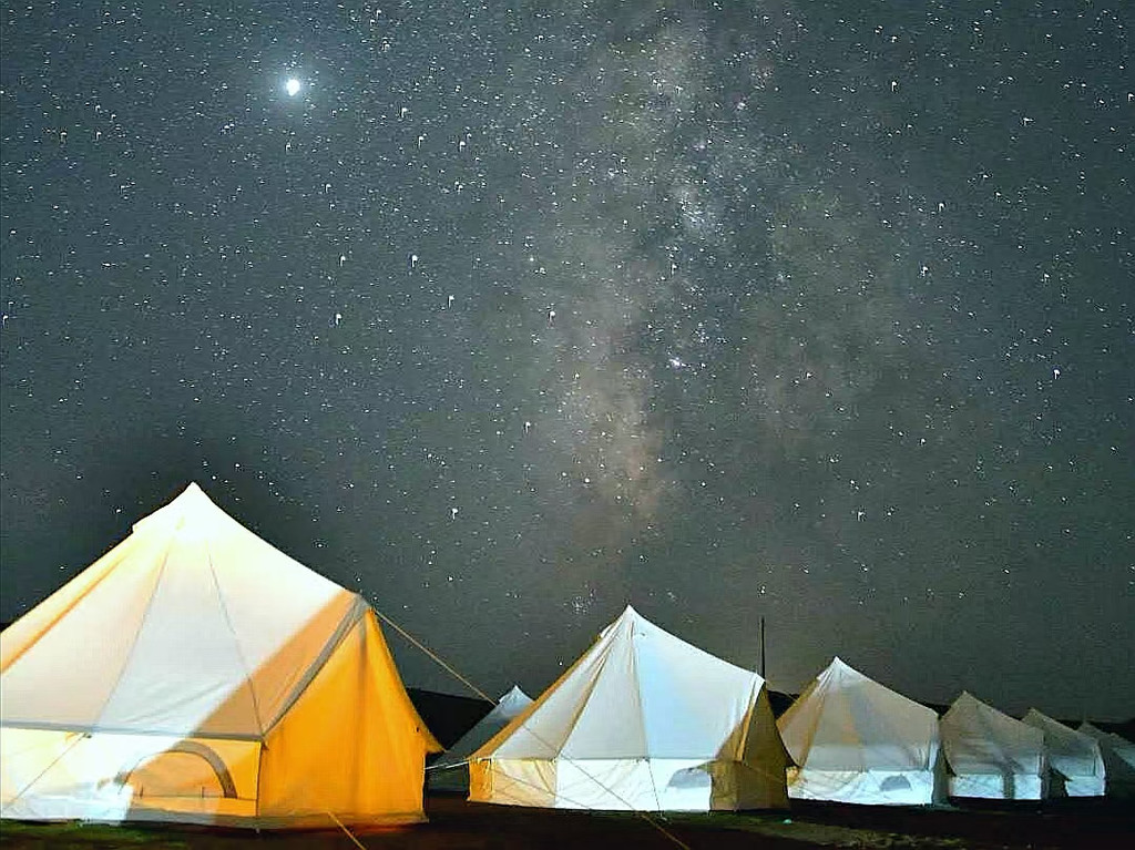 营地有各种各式帐篷营地,建议大家定遥望星空.筑梦大床帐篷,人均价格100多左右(旺季会贵一些),最重要的是,可以洗热水澡!!(这个非常重要