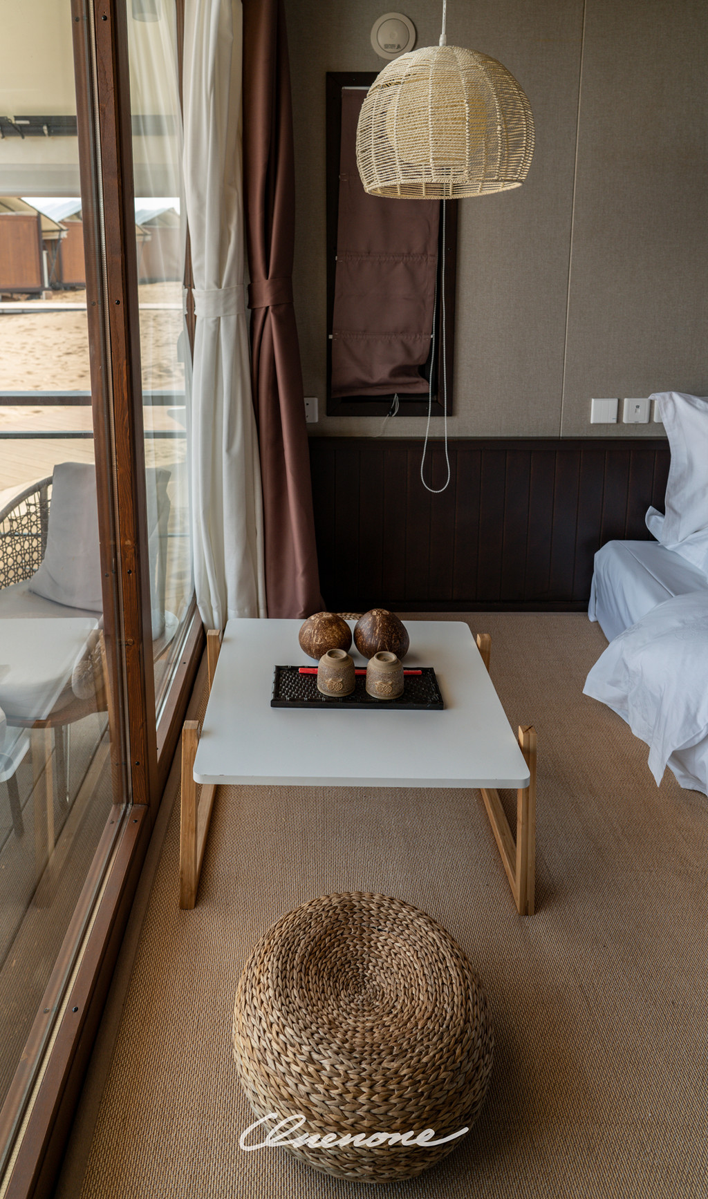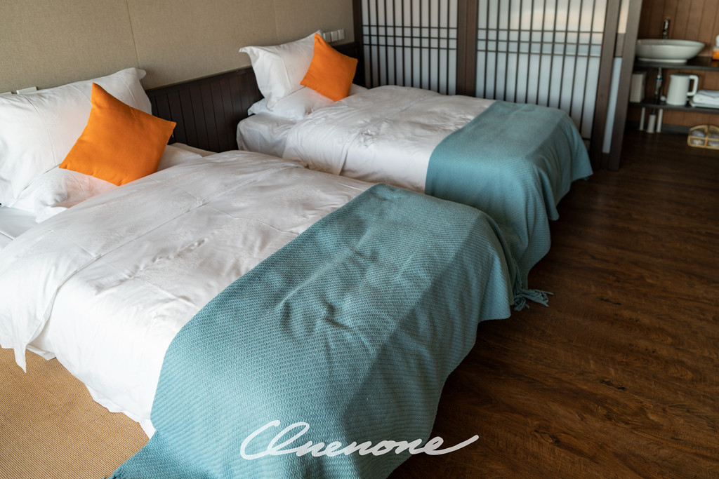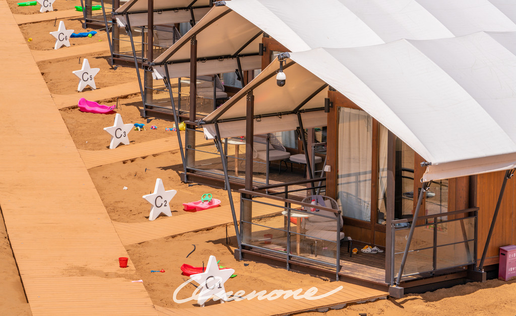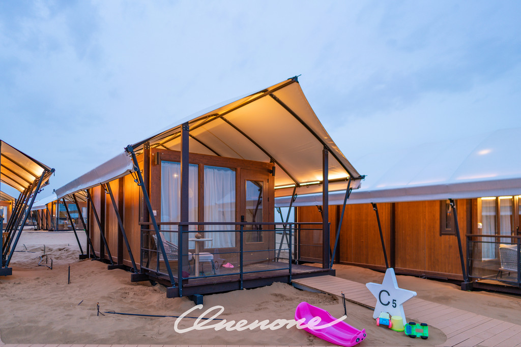 沙漠星星酒店已营业客房房型分为沙漠帐篷木屋和观景房两种,观景房仅有4间,位于沙坡顶端,视野开阔,180度全景落地玻璃窗,配合电动窗帘设施,入住客人躺在床上,就可以直接欣赏沙漠夕阳和满天繁星。帐篷木屋均为独栋,装修精致典雅,配套设施完善,室外阳台区域配有茶几躺椅脚踏,室内茶台卫浴睡眠分区合理,榻榻米双床可自行拼接成大床。格力空调、索尼液晶电视、天猫魔盒、小米旗下米家电热水壶、电吹风、电子秤、A.O.Smith电热水器、全套欧舒丹洗护备品、恒洁卫浴、康乃馨床品、农夫山泉饮用水……专用光纤,信号塔加强,客房区域WIFI覆盖较好,网速有保障。