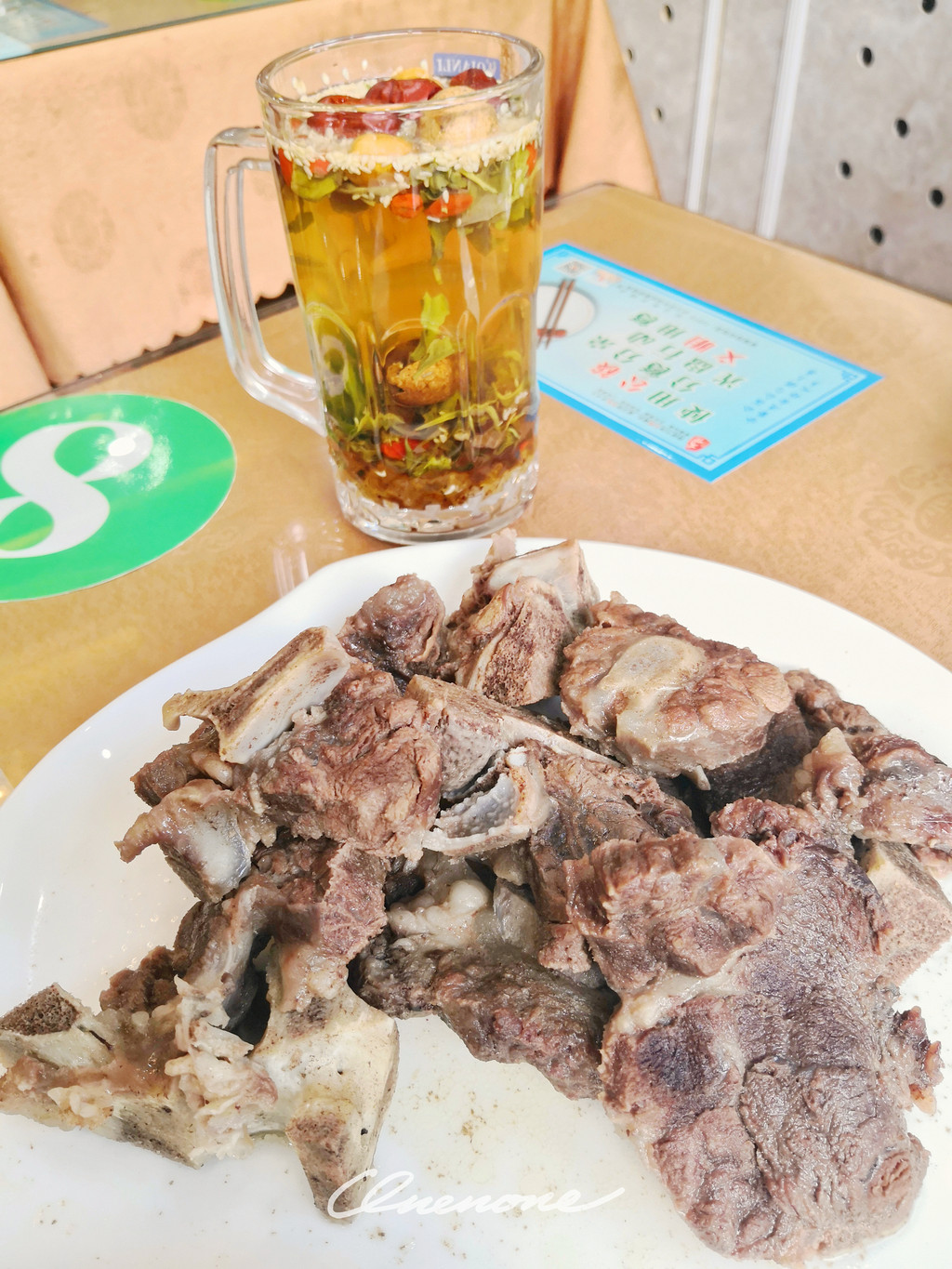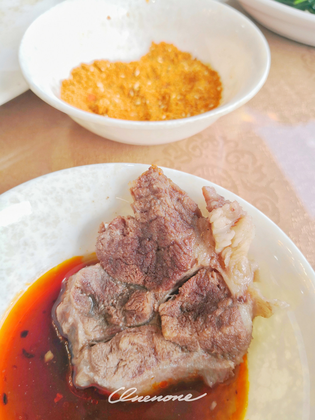 招牌牛骨头:名不虚传的招牌菜,肉质细腻,软烂多汁,骨肉相连,五香口味,搭配干辣椒粉蘸碟,好吃到根本停不下来。