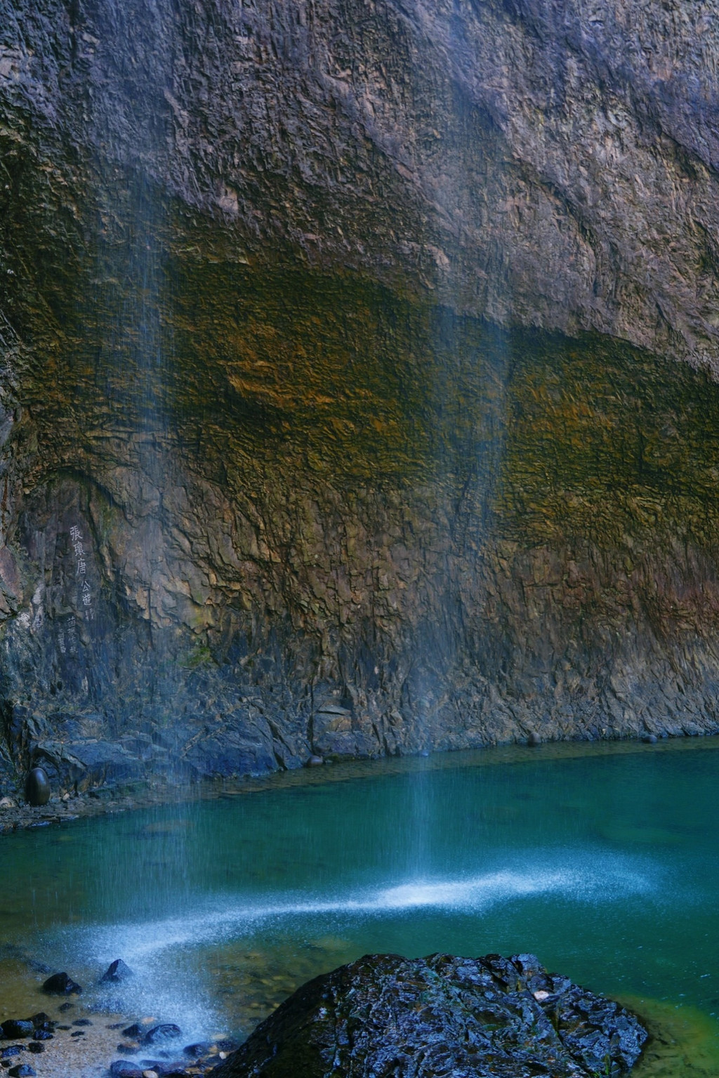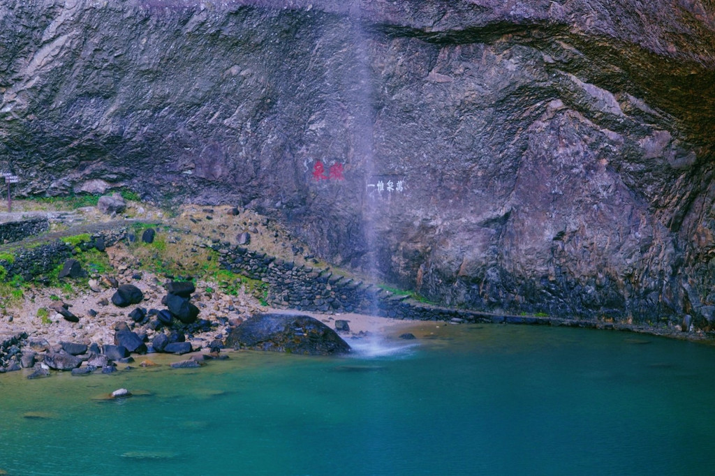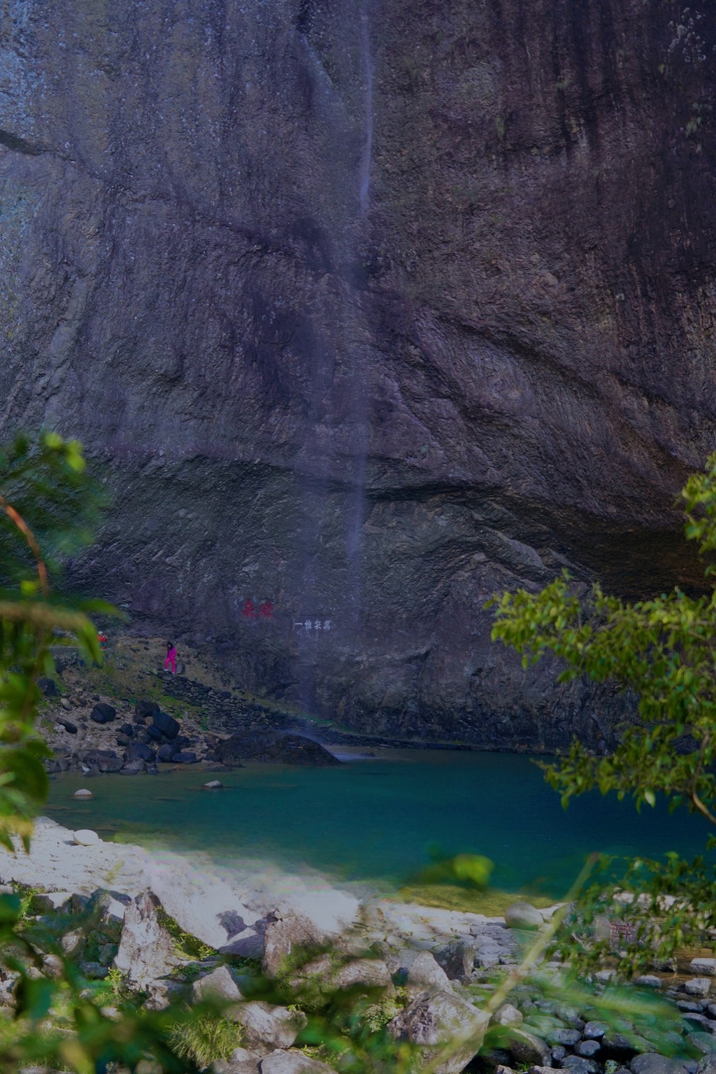 大龙湫的水,碧色如顷,在阳光的照耀下五彩斑斓,不输九寨。穿过茂密的丛林,方见一处巨型石壁,犹如一道巨型的围墙屹立在天地之间,顶部一道落差190米道飞瀑垂直而下,似若一条顽皮的银龙,一头扎进深不见底的碧潭之中。这便是 雁荡山 之首的大龙湫瀑布,号称“天下第一瀑”。