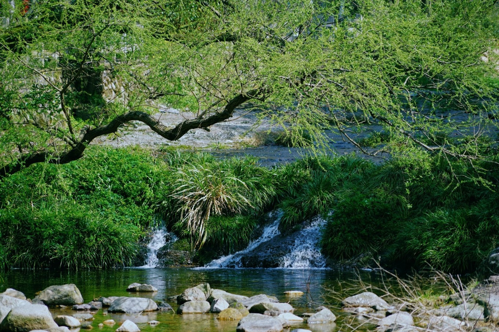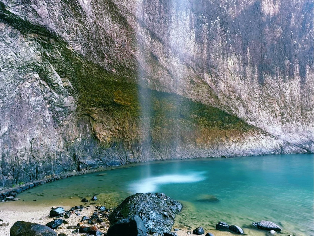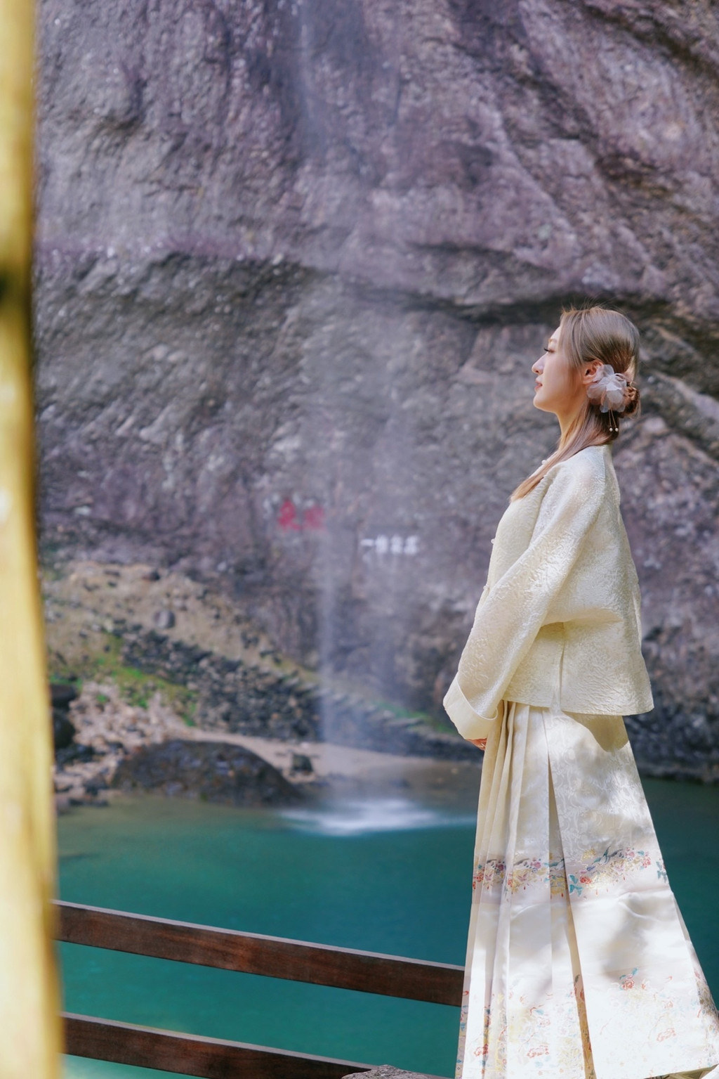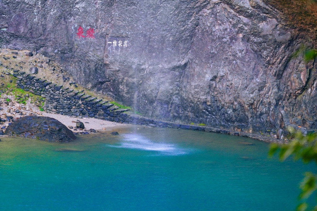 大龙湫的水,碧色如顷,在阳光的照耀下五彩斑斓,不输九寨。穿过茂密的丛林,方见一处巨型石壁,犹如一道巨型的围墙屹立在天地之间,顶部一道落差190米道飞瀑垂直而下,似若一条顽皮的银龙,一头扎进深不见底的碧潭之中。这便是 雁荡山 之首的大龙湫瀑布,号称“天下第一瀑”。