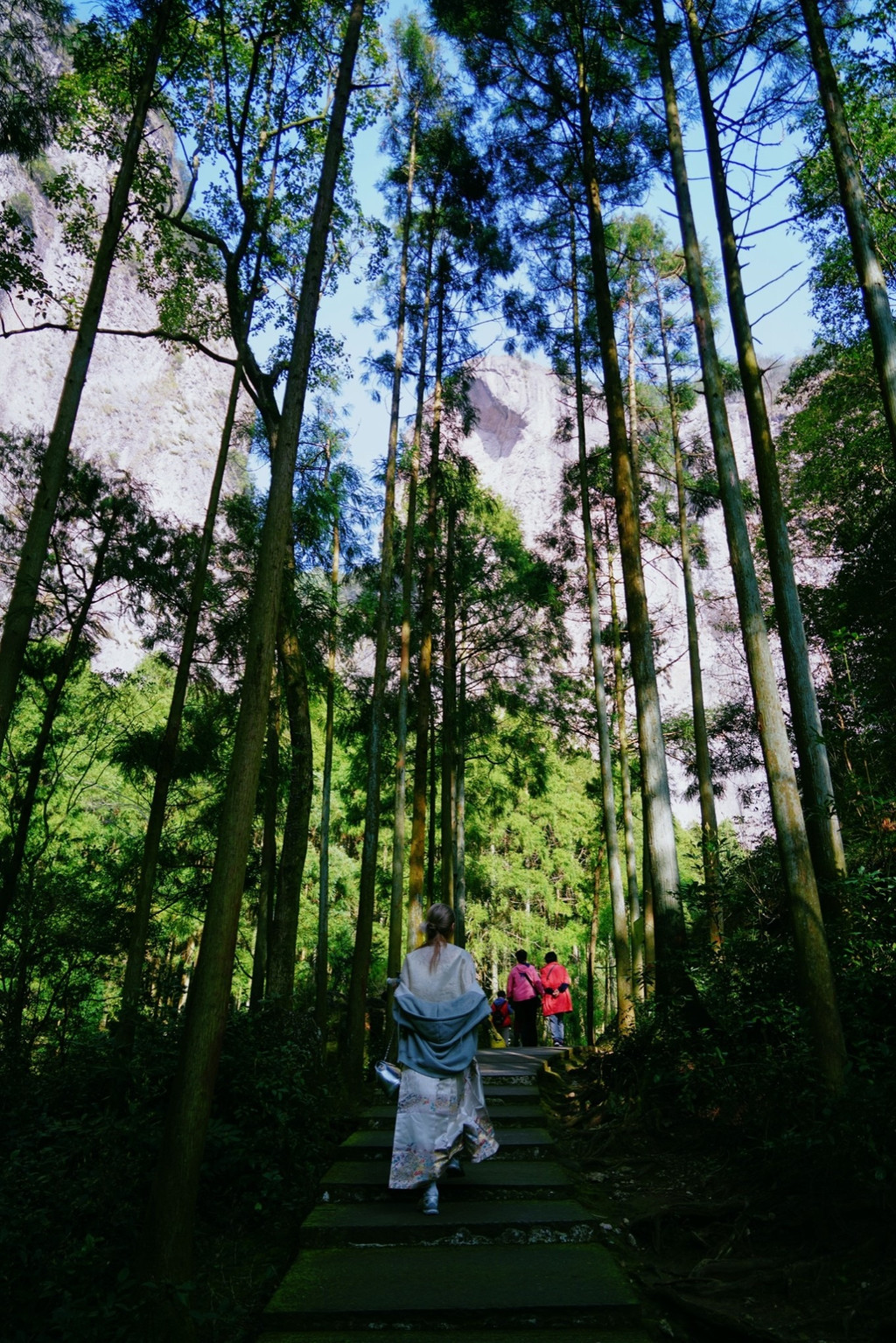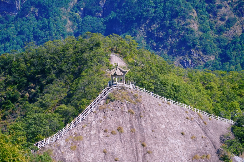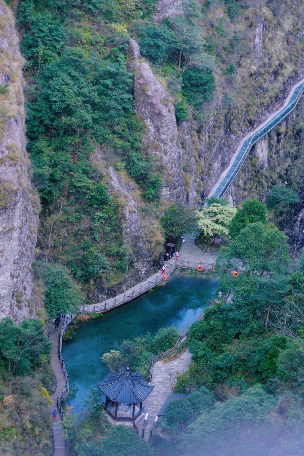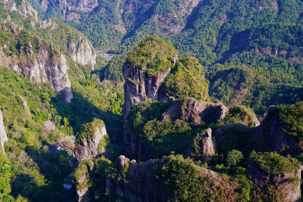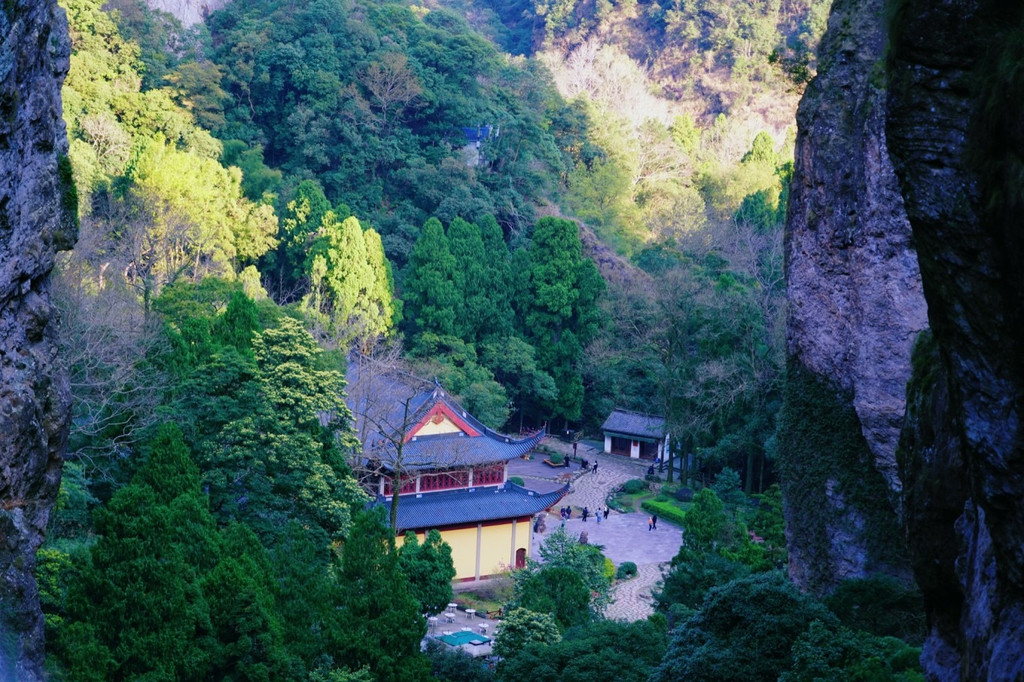“雁荡冠天下,灵岩尤绝奇。”徒步山中悬壁栈道,沿着蜿蜒盘旋的山路前行,四周参天古木环抱,灵岩群峰村落有致的环列,犹如一支雄壮浑庞的军队,潜伏在深山幽林之中。