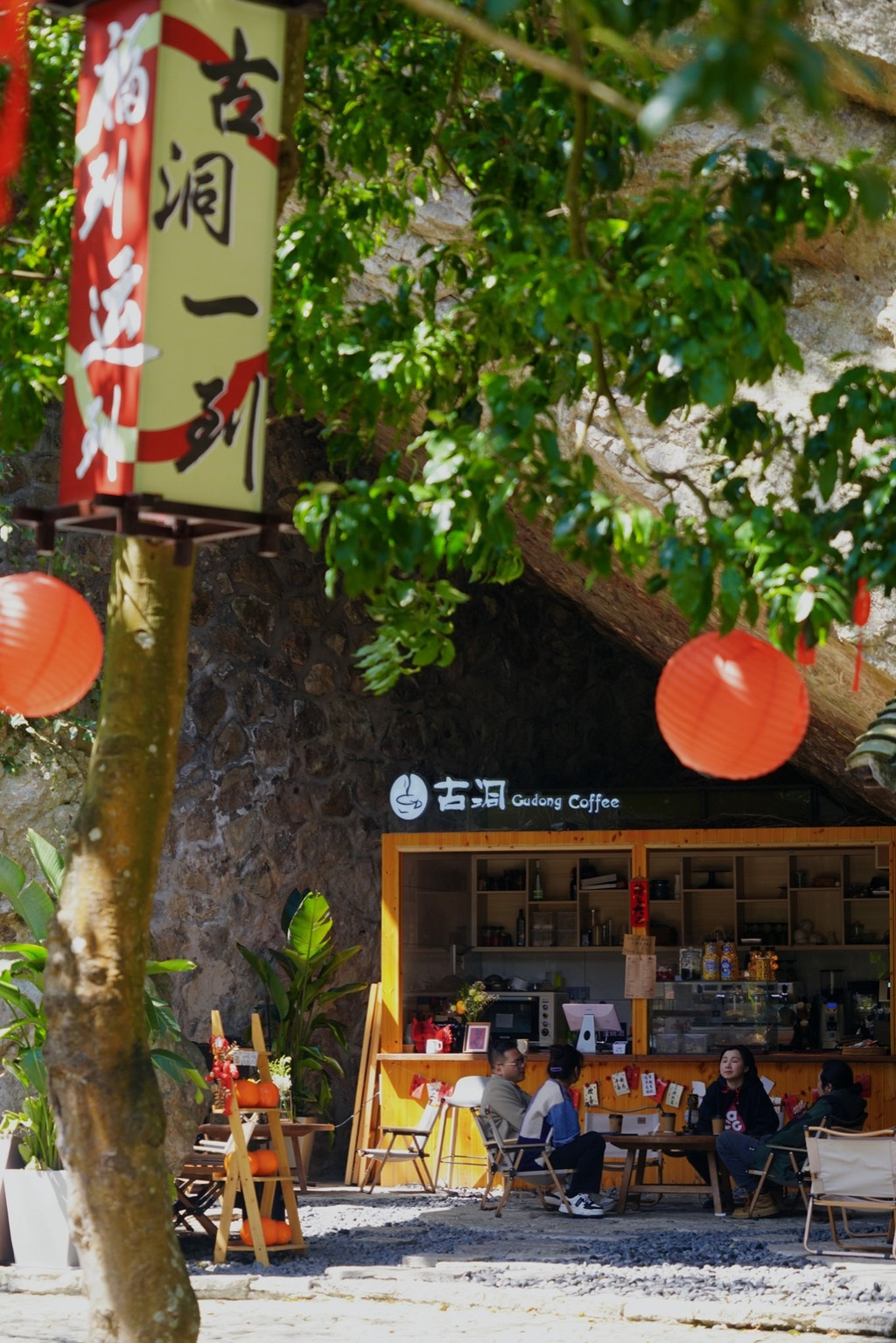 顺着崎岖山路向上,经古洞咖啡馆,登东瑶台、西瑶台,可观蔚为壮观秀丽的合掌峰。东、西瑶台相对而望,矗立山间,形若一对相濡以沫的恋人,携手观赏奇山秀水。与东、西瑶台之山谷对望的就是观音洞、 北斗 洞。