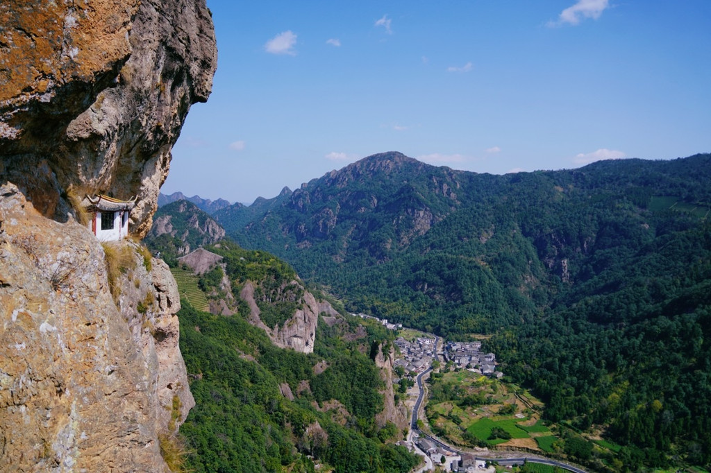 游 雁荡山 必去方洞景区,方知 雁荡山 的鬼斧神工之笔。因其山间有一天然石洞,远看呈方形而得名。洞口百余米的方洞栈道环绕石壁峭峰,被称作“”银崖天廊”。沿着山道前行,穿行洞间,头顶巨石,俯瞰秀美的田园风光,一路奇遇倒挂金钟、五指峰等奇峰,有一种人在画中游的妙趣。